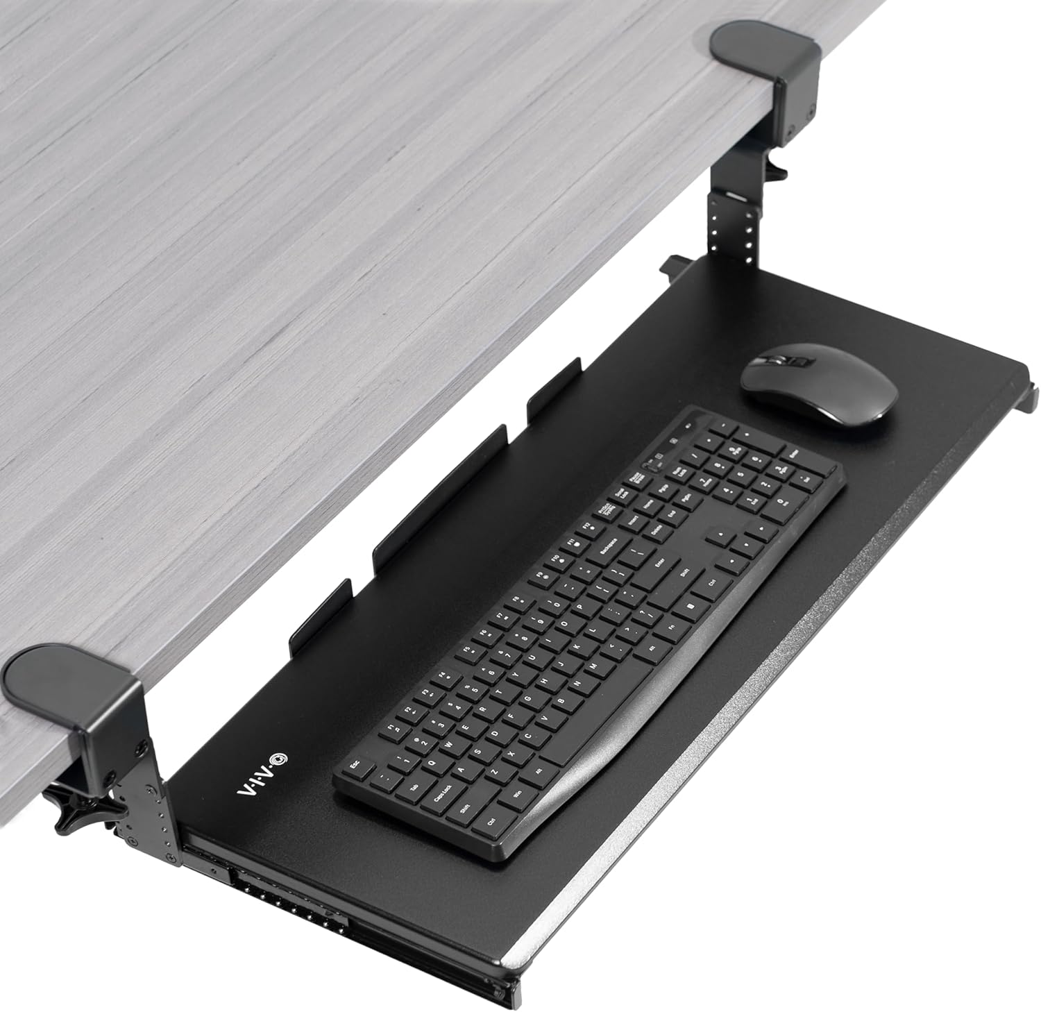 - Sturdy C-Clamps - Attach the keyboard tray to your workstation without causing any damage to your desk (3.4" Maximum Desk Thickness) with sturdy C-clamps that hold everything tightly in place and are easily adjustable for user convenience. Before purchasing, please make sure that your desk surface does not exceed a thickness of 3.4".