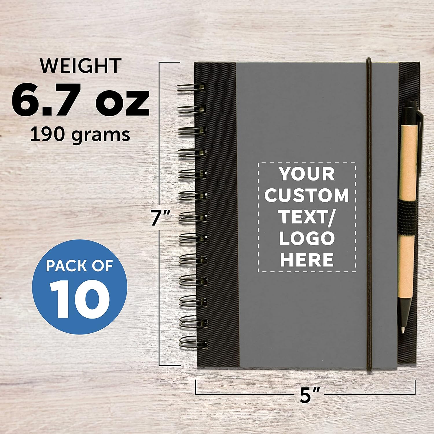 DISCOUNT PROMOS Custom Eco Block Notebooks with Pens Set of 10, Personalized Bulk Pack - Perfect for School, Office, Business, Home - Smoke