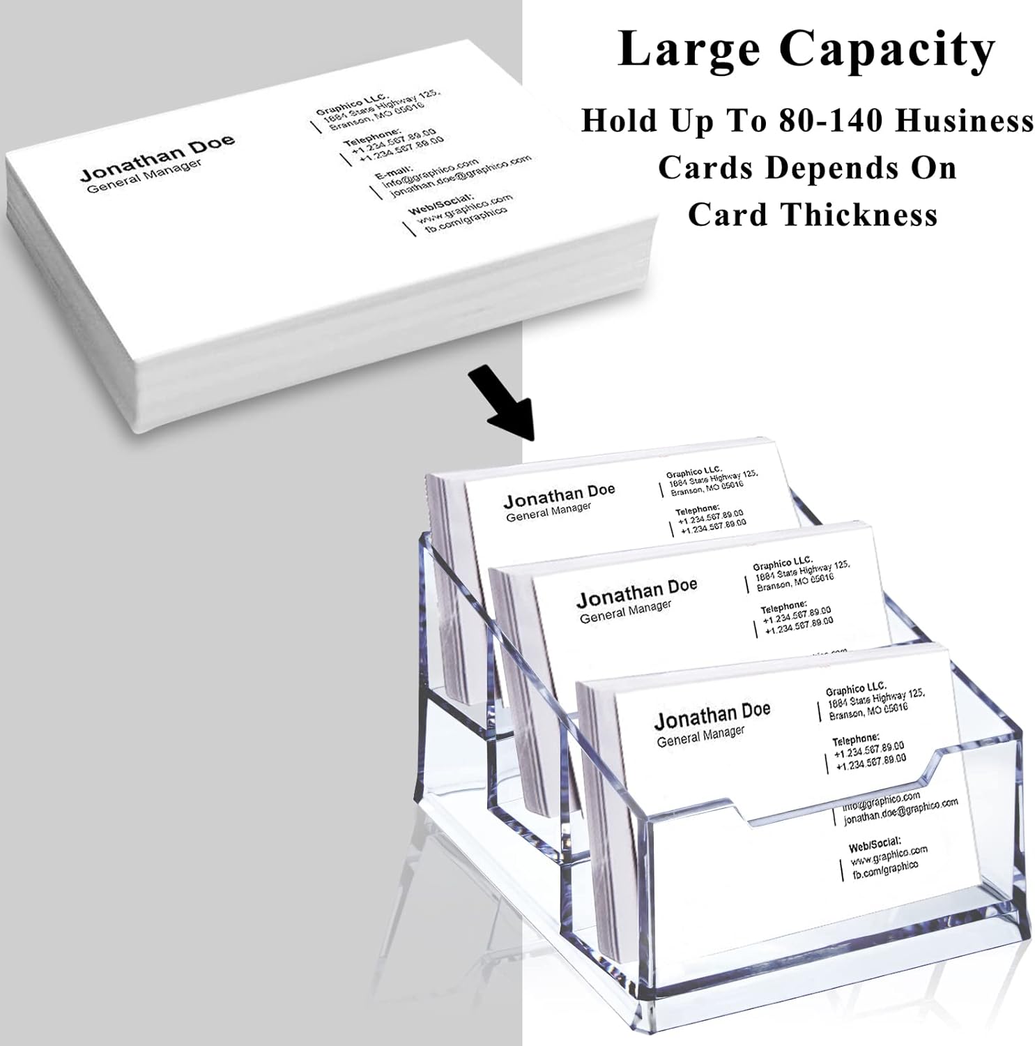 - High Capacity: Convertible design,Large storage capacity,Each layer can store 150 business cards,Easy to take.