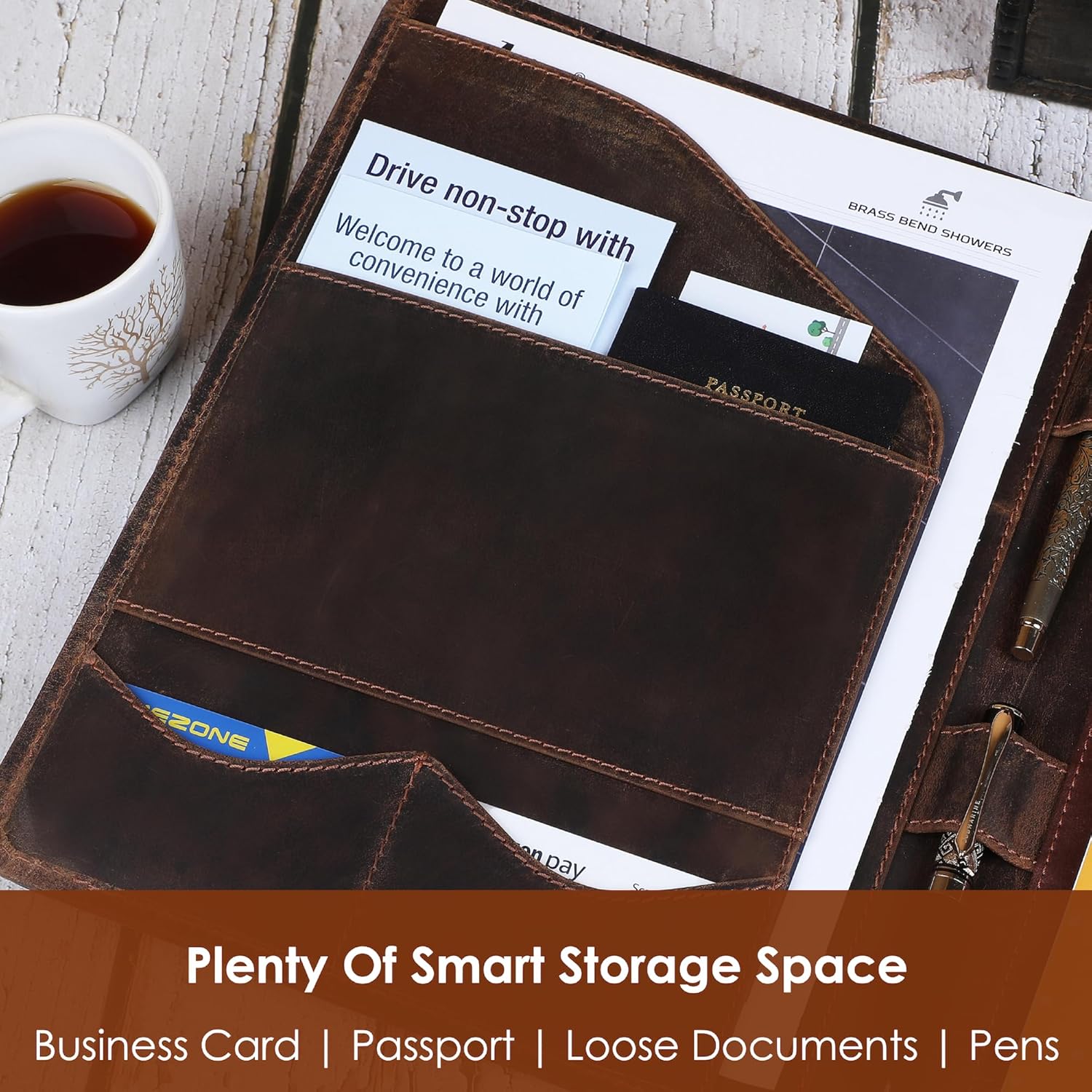 - Professional Leather Padfolio: Make a confident impression during meetings, interviews, or presentations with this sleek 13” x 10” leather portfolio. It offers ample storage for letter-sized and A4 notepads, business cards, and pens for added convenience.