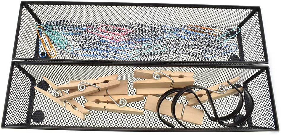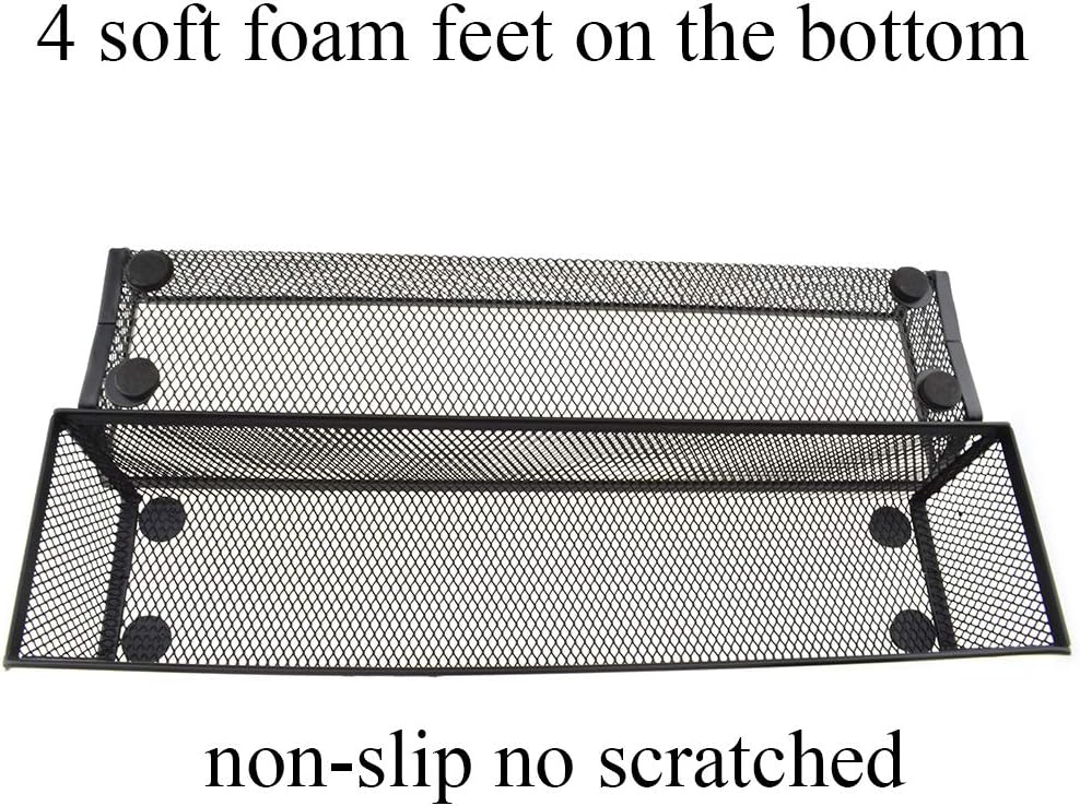 HAHIYO Stackable Mesh Tray Cup 12 x 3 x 2 inches Sturdy Container for Desk Drawer Organizer Collection for Home Office School kitchen Soft Foam Feet No Sharp Edges 2 Pack Black