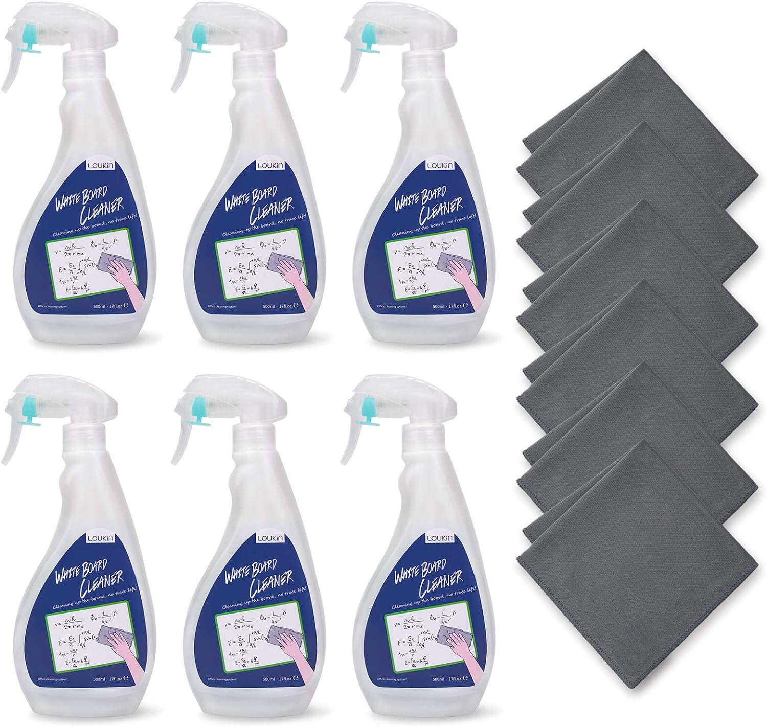 loukin Non-Toxic Whiteboard Cleaner, 17 fl oz Dry Erase Board Cleaner, Low-Odor Whiteboard Cleaning Spray with Cloths, Removes Stubborn Marks from Whiteboards, Chalkboard (6-Pack)