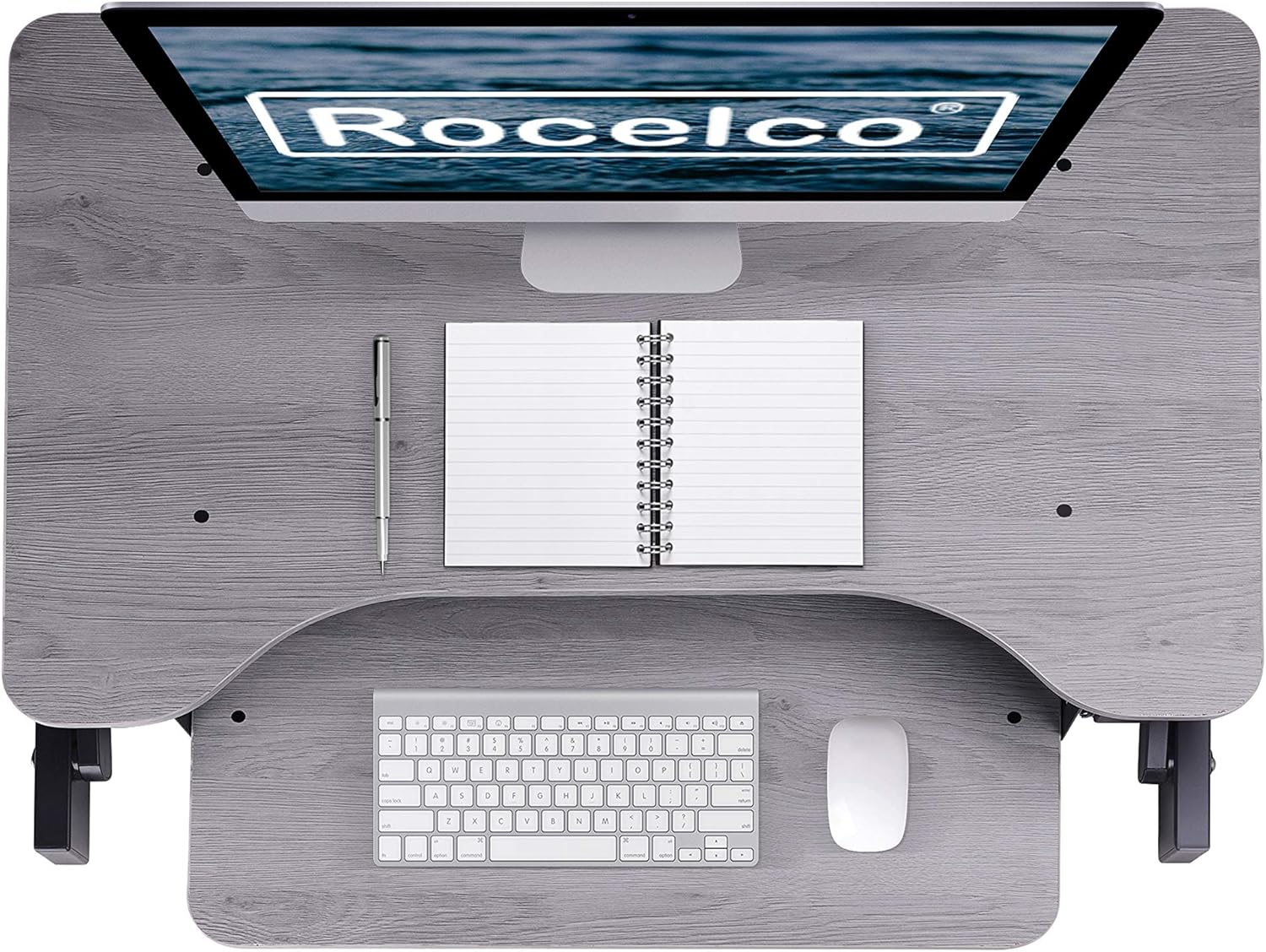 Rocelco 37.5" Deluxe Height Adjustable Standing Desk Converter - Quick Sit Stand Up Dual Monitor Riser - Gas Spring Assist Computer Workstation - Large Retractable Keyboard Tray - Gray (R DADRG)