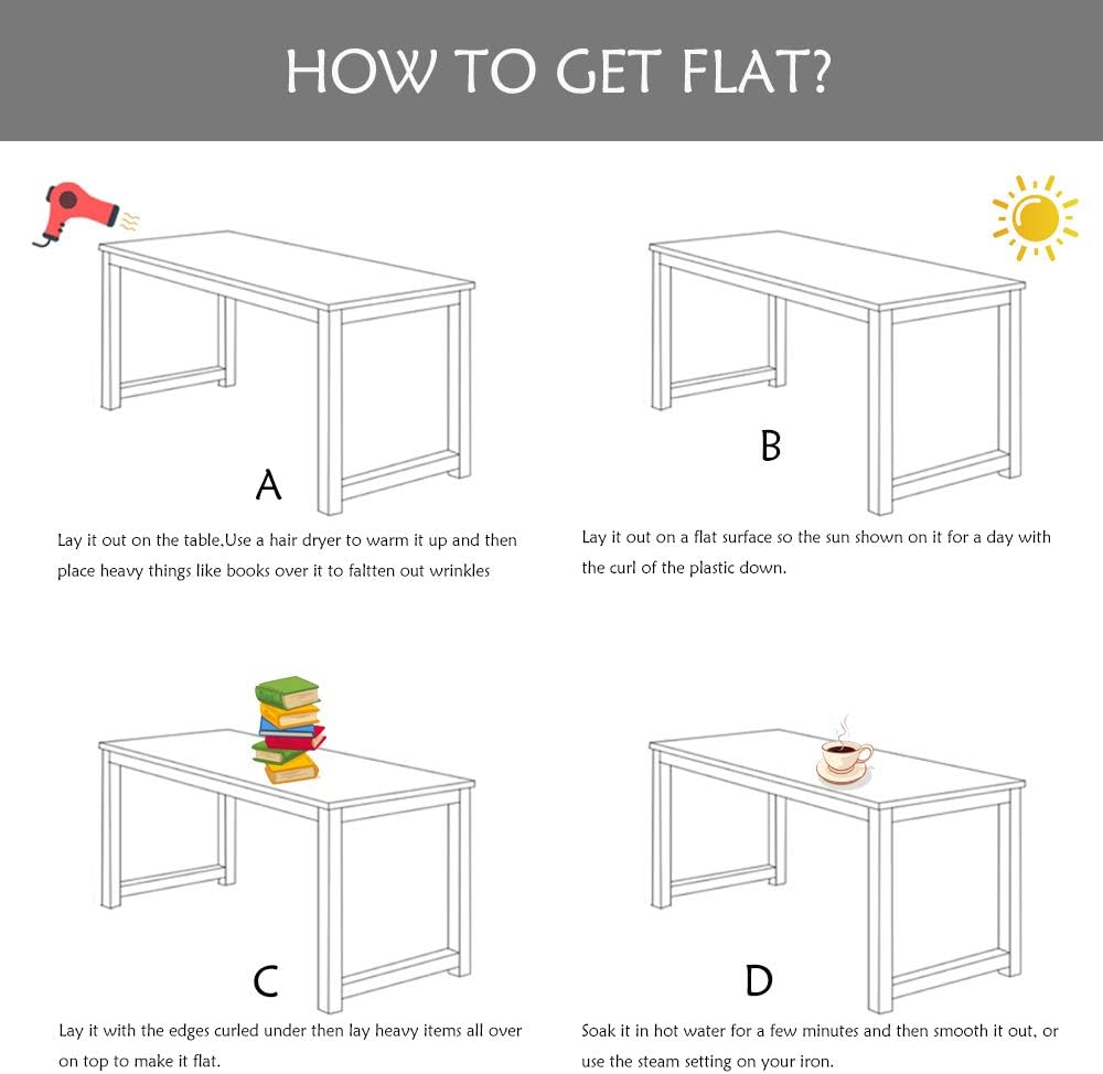 - D.DURABILITY& EASY TO CLEAN: Our clear table pad is transparent and very easy to clean ,wipeable and waterproof.Suitable for daily use. Simply wiping this vinyl table cover with a damp cloth that can get all the mess off its surface and you may be ready instantly to serve next round of guests! These plastic table covers can be used not only as rectangular tablecloth but also as desk protector or clear desk pad.