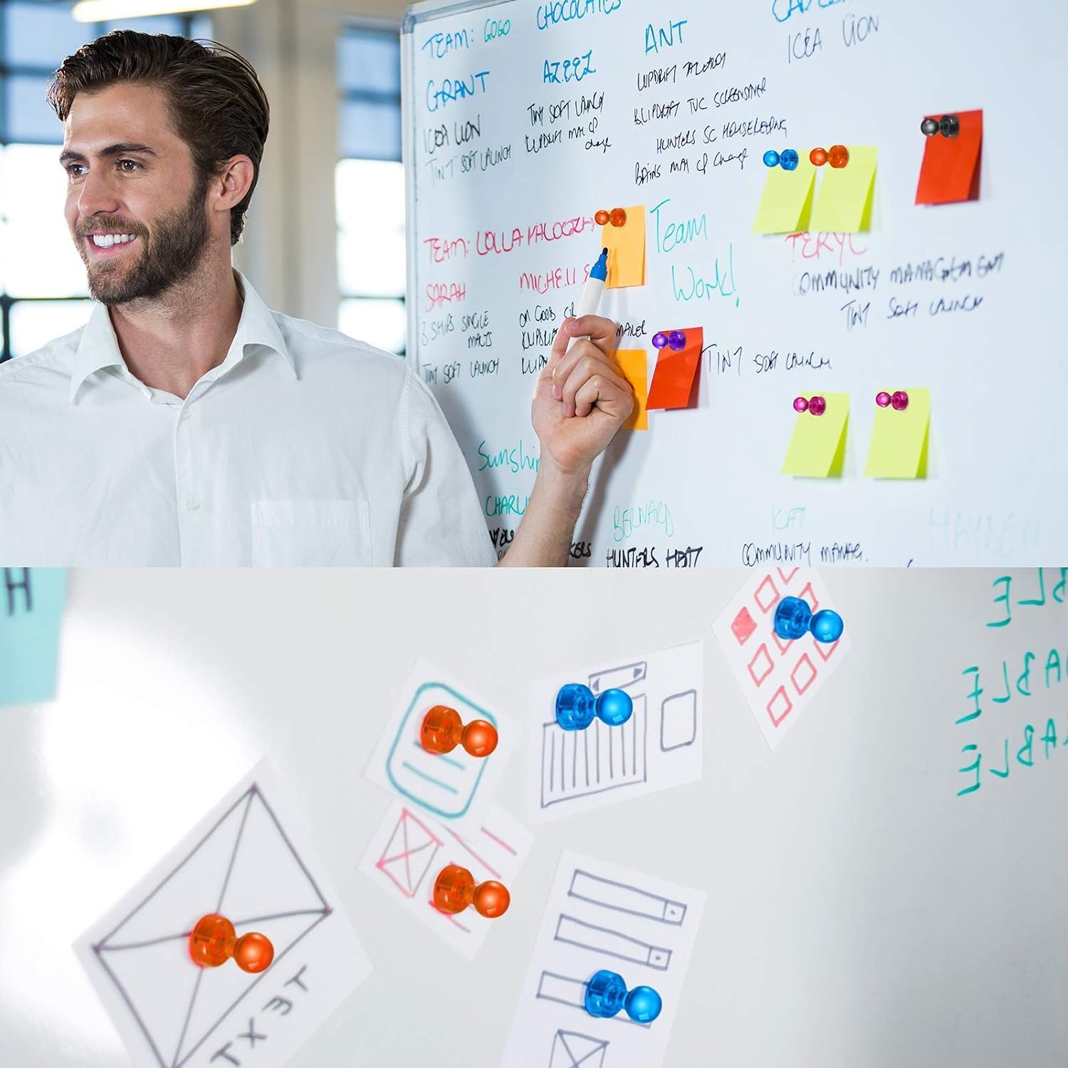 - SMALL STRONG MAGNETS: Each powerful magnet holds up to 11 sheets of paper on any metallic surface. No more sliding papers with cheap magnets. These push pin magnets are tiny too so they won't cover up exact things you want to display.