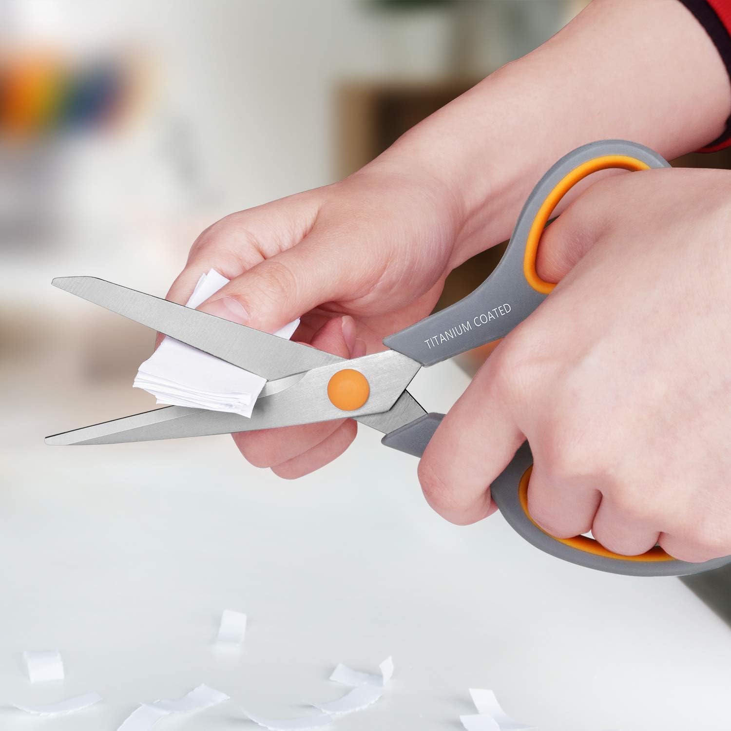 Scissors 8" Multipurpose Titanium Coated Sturdy Sharp Scissors Right/Left Handed Comfort-Grip Handles for Office Home School Sewing Fabric Craft Supplies Gray