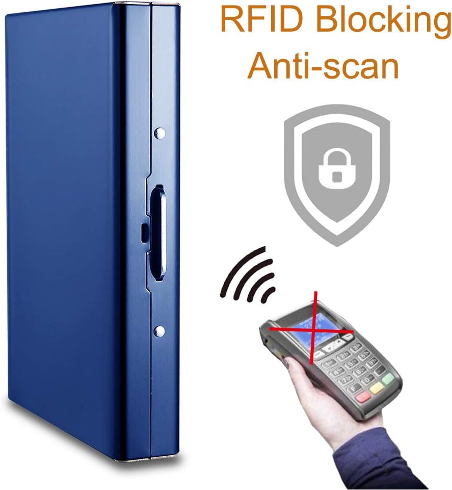 EASTNIGHTS RFID Credit Card Holder Protector Metal Credit Card Wallet Business Card Holder for Men Women Gift Box Package (Blue)