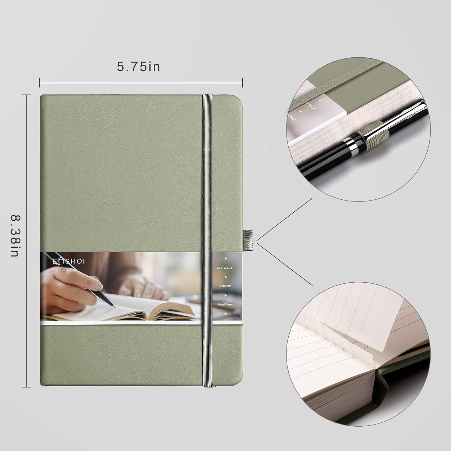 EMSHOI Notebook College Ruled - 256 Numbered Pages, 120 Gsm Thick Paper, A5 Hardcover Leather Lined Journal for Men & Women Work School Journaling Writing Diary 5.7" X 8.3"(Green)