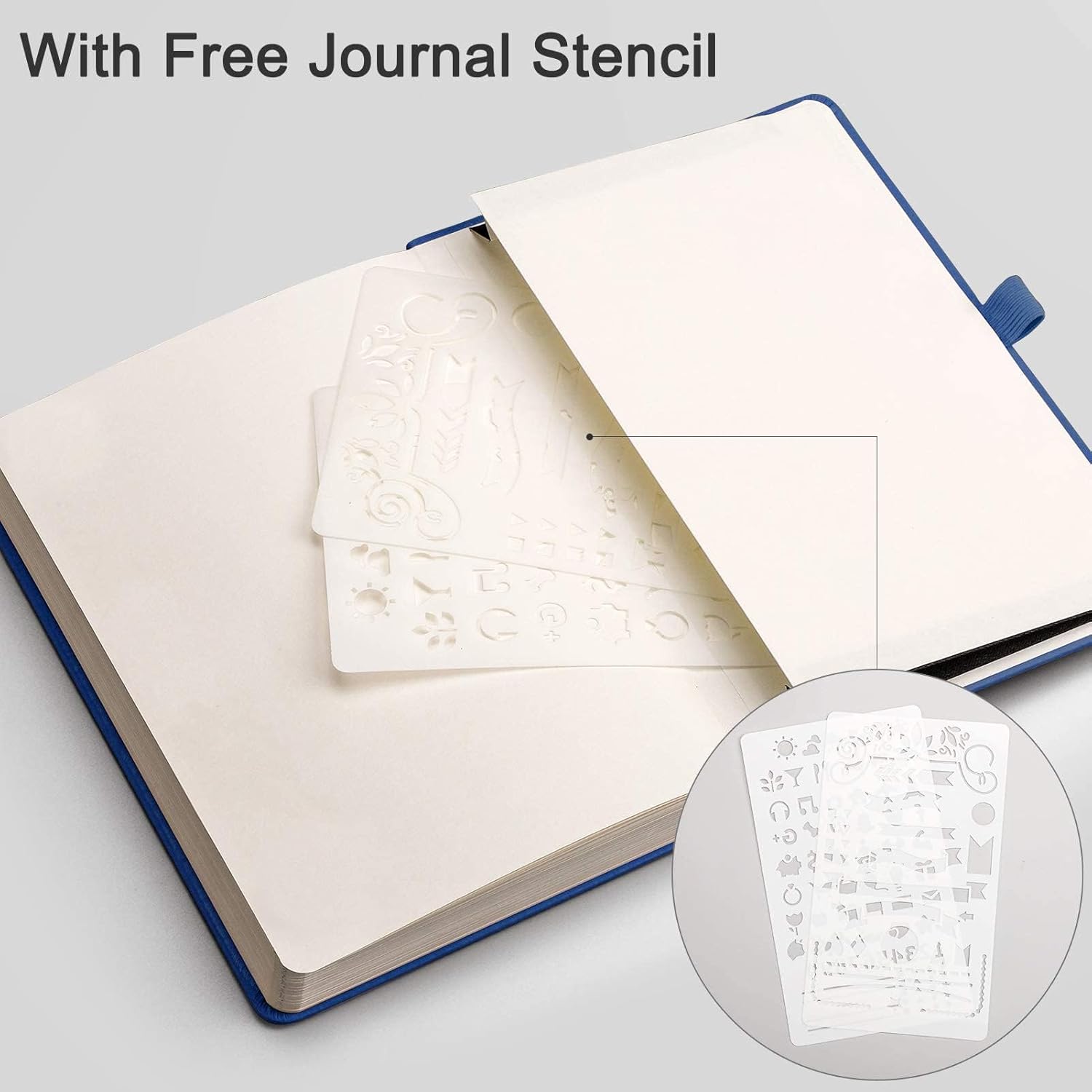 - Dotted Grid Journal – A5 (5.75"x8.38") hardcover notebook with 120gsm paper, 256 pages, elastic closure, 2 bookmarks, 1 pen loop, 2 stencils, 8 perforated sheets, and a back pocket for bullet journaling, note-taking, gifting