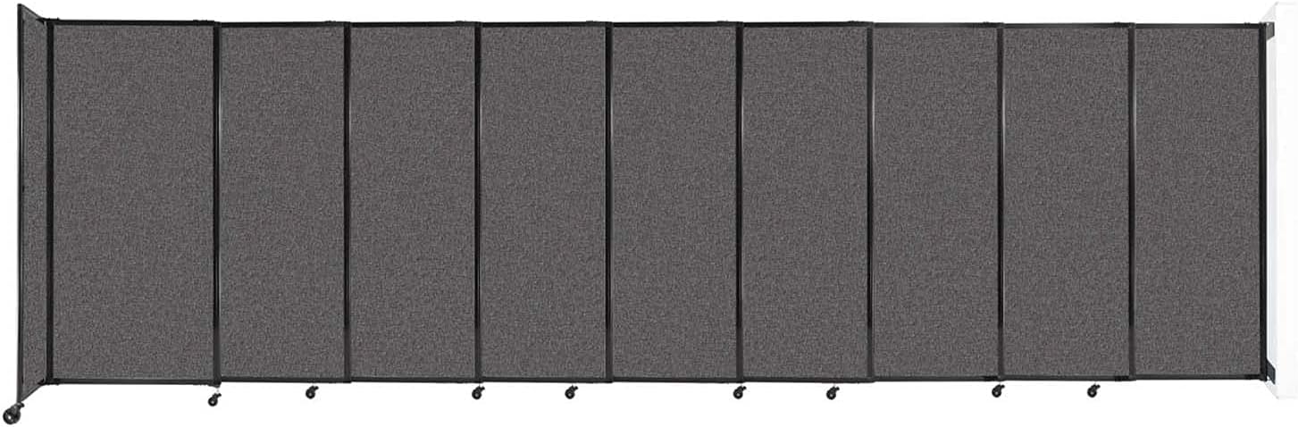 Wall-Mounted Sliding StraightWall Room Divider | Adjustable Widths | Locking Wheels | Room Separator | Up to 19'9" Wide x 6' Tall Charcoal Gray Fabric Panels