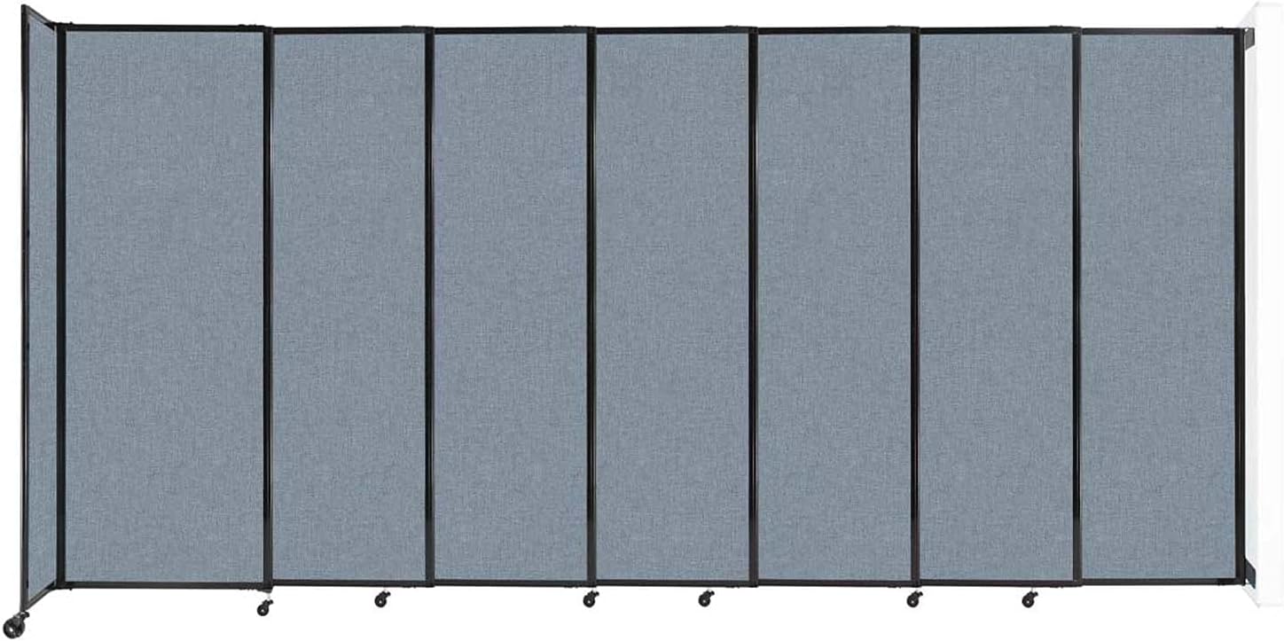 Wall-Mounted Sliding StraightWall Room Divider | Adjustable Widths | Locking Wheels | Room Separator | Up to 15'6" Wide x 7'6" Tall Powder Blue Fabric Panels