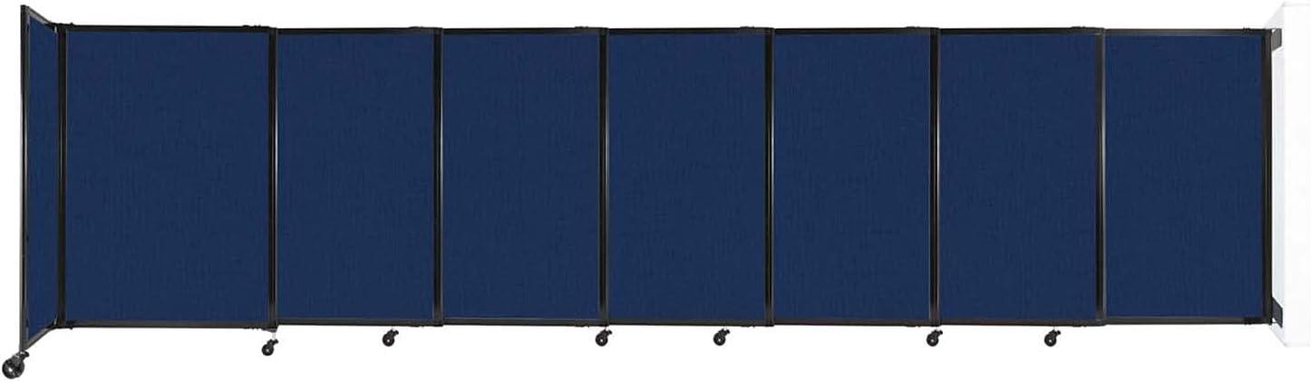 Wall-Mounted Sliding StraightWall Room Divider | Adjustable Widths | Locking Wheels | Room Separator | Up to 15'6" Wide x 4' Tall Navy Blue Fabric Panels