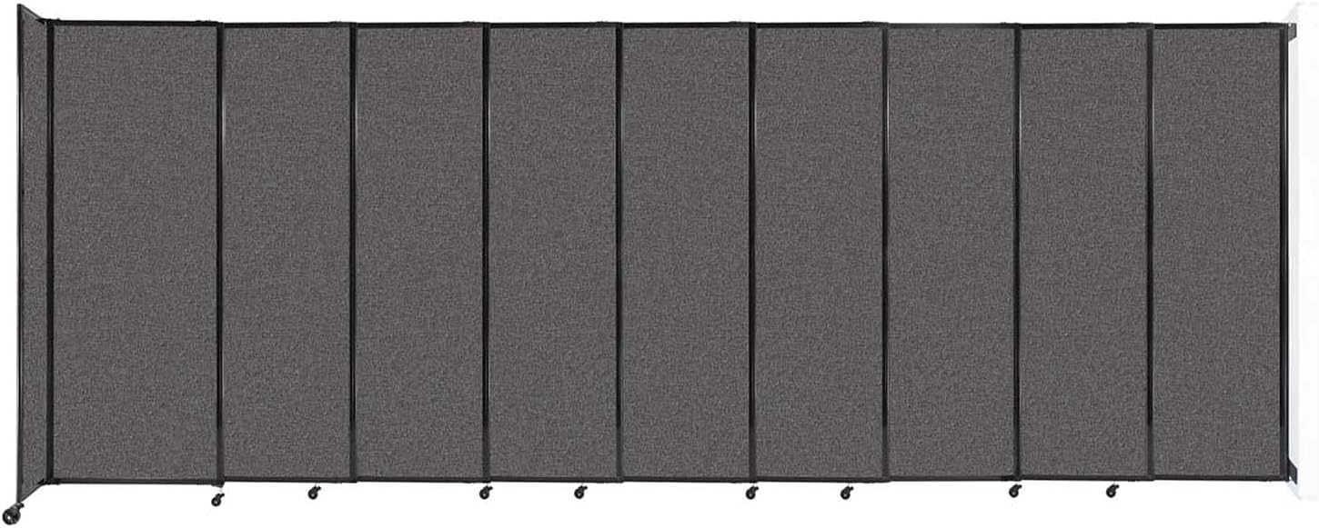 Wall-Mounted Sliding StraightWall Room Divider | Adjustable Widths | Locking Wheels | Room Separator | Up to 19'9" Wide x 7'6" Tall Charcoal Gray Fabric Panels