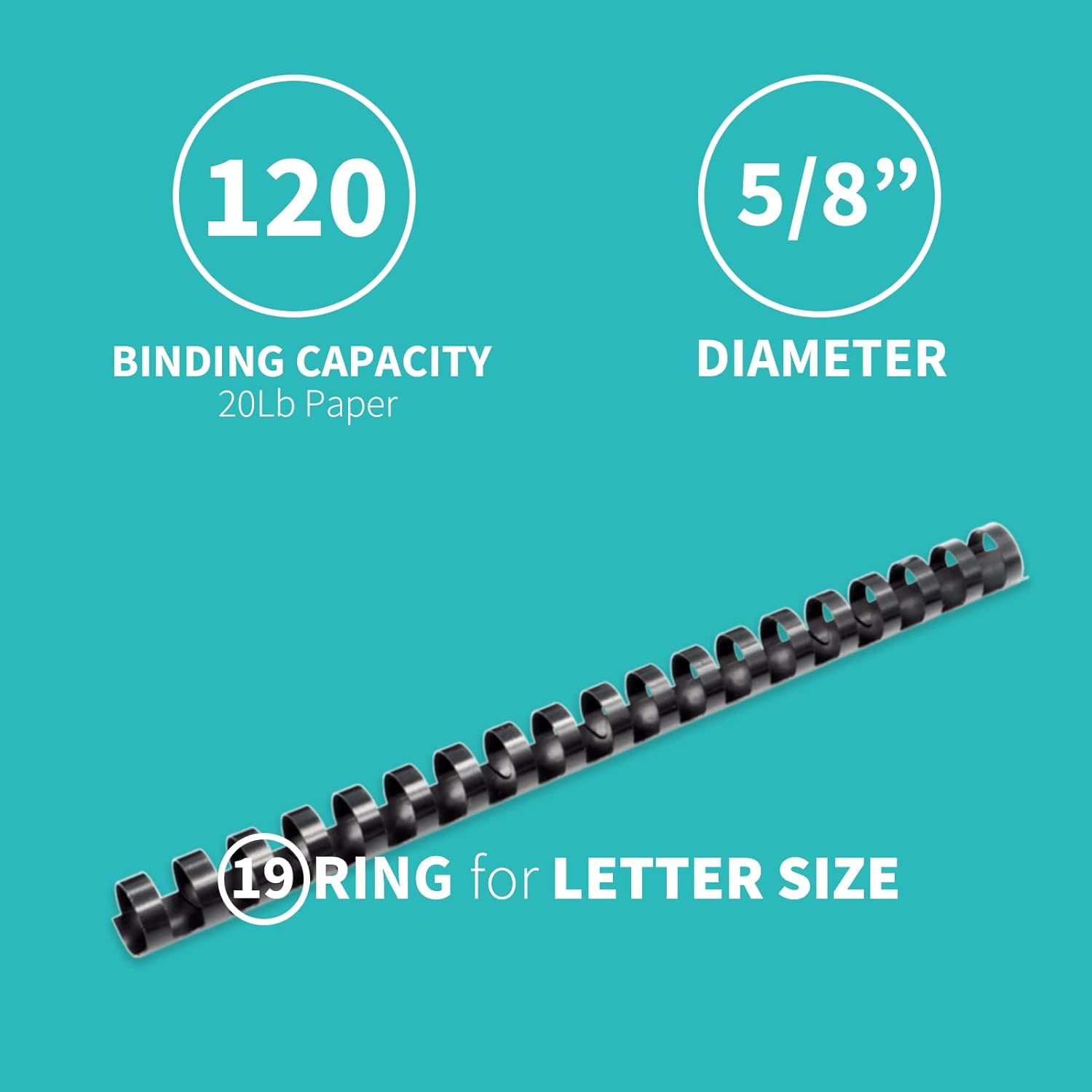 Binditek 100 Pack Plastic Binding Comb Spines, 5/8 Inch Diameter, 120 Sheet Capacity, for Letter Size, Black, for Students and Coworkers