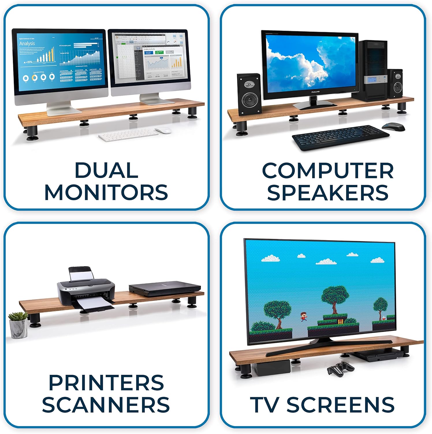 - Supports Up To 200 Pounds - Fitted with 6 strong steel legs, this stand can handle the heaviest of setups. Go ahead and use it as the ultimate double monitor stand, TV stand, printer station or laptop riser on your desk or anywhere in your office!