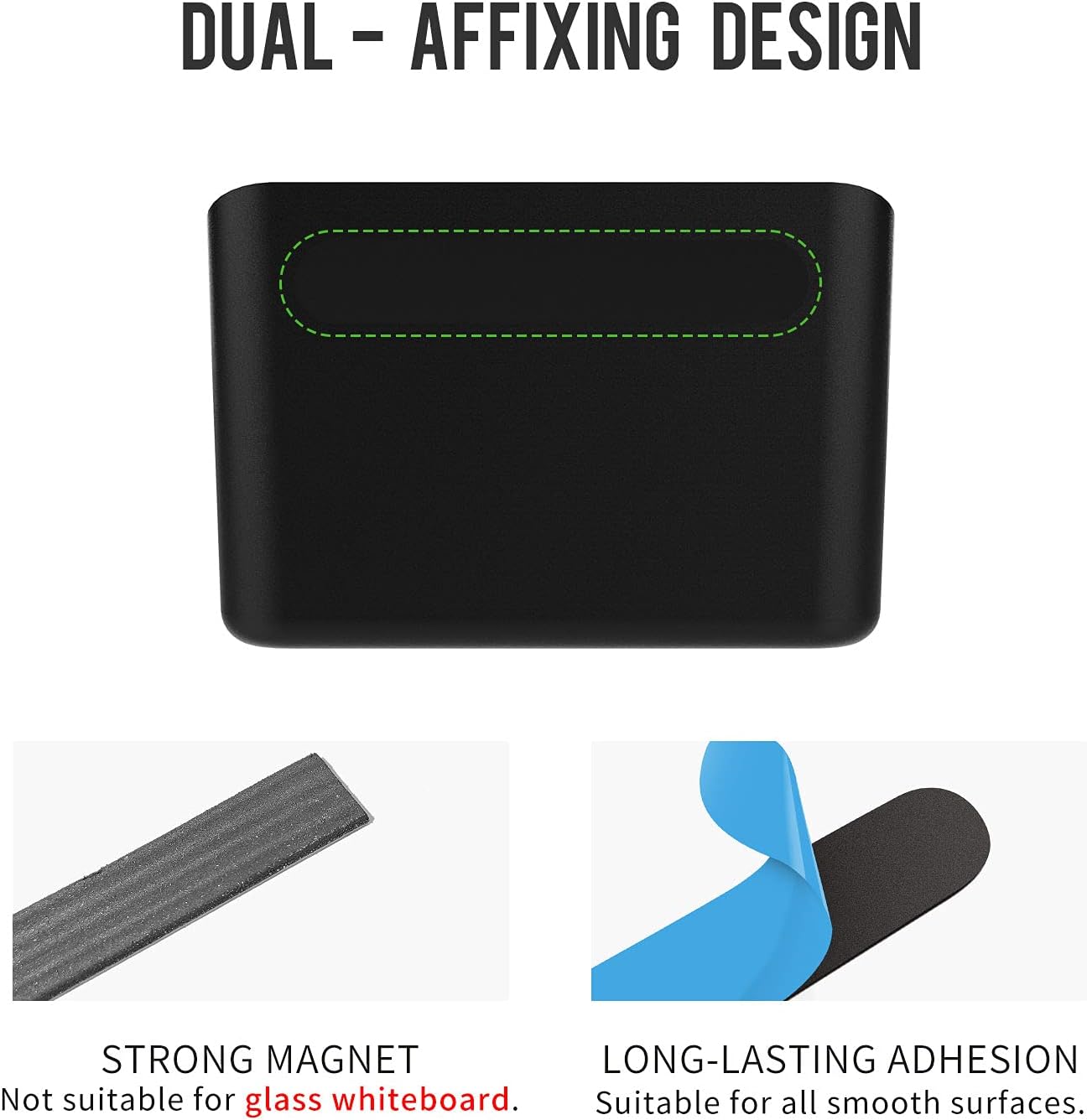 - Dual Affixing Design: Dry erase accessory tray with optional magnetic and adhesive stickers. Easily attaches to magnetic surfaces such as whiteboards and refrigerators and various nonmagnetic surfaces, too