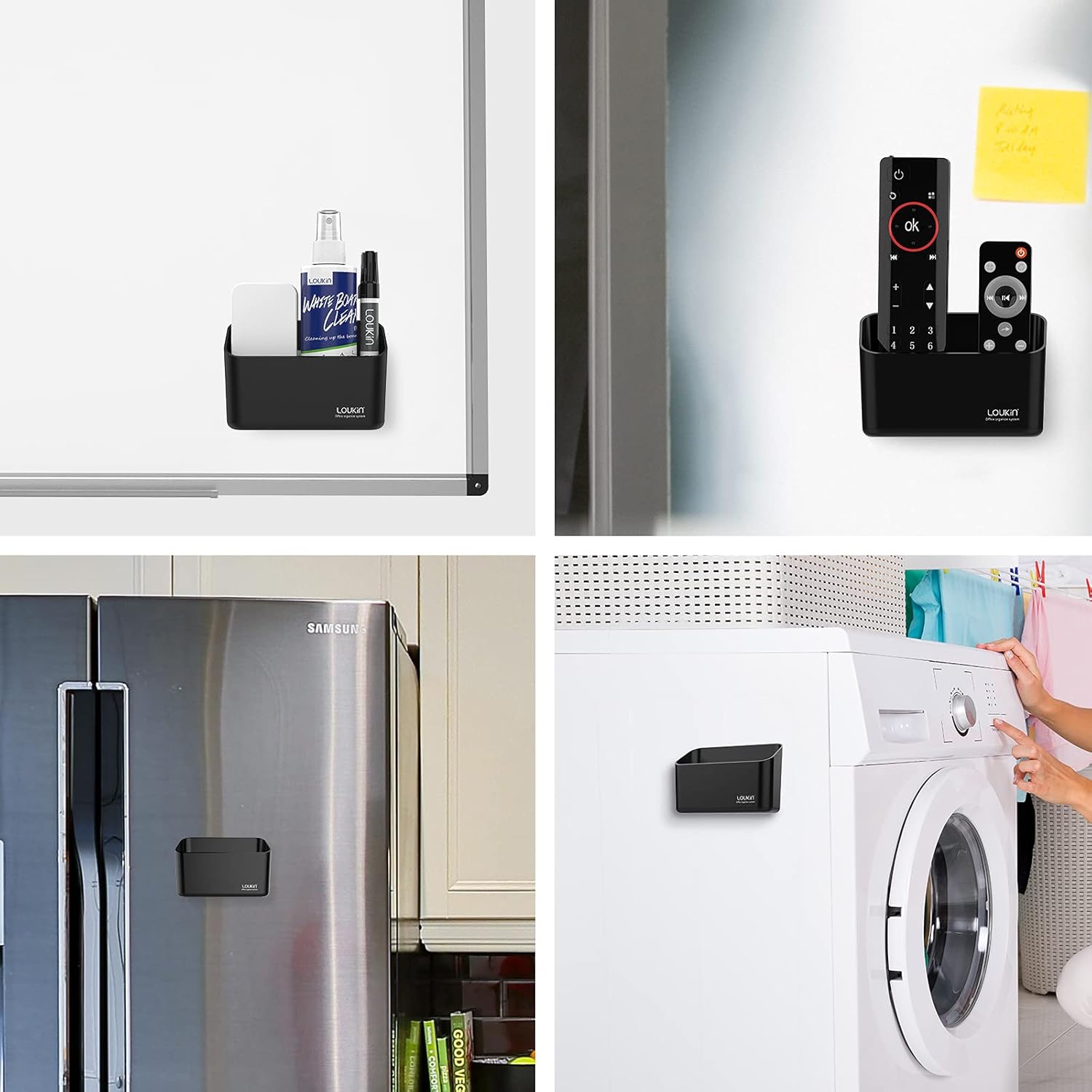 loukin Magnetic Marker Holder, Dry Erase Marker Holder, Remote Control Holder, Magnetic Storage Organizer for Whiteboard or Refrigerators (Black)