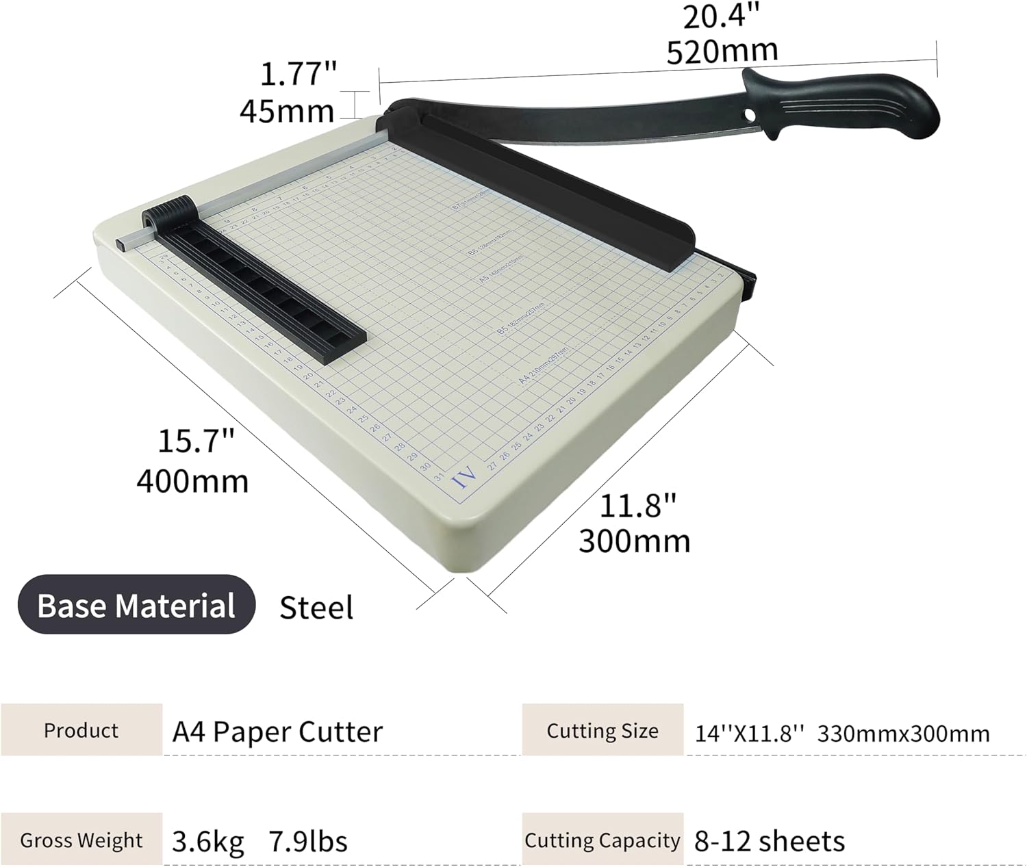 - [HIGH PERFORMANCE]: Strong blade bearing is designed to ensure accurate cutting size. Up to 12 sheets of paper can be cut at a time by straight cutting with closed side