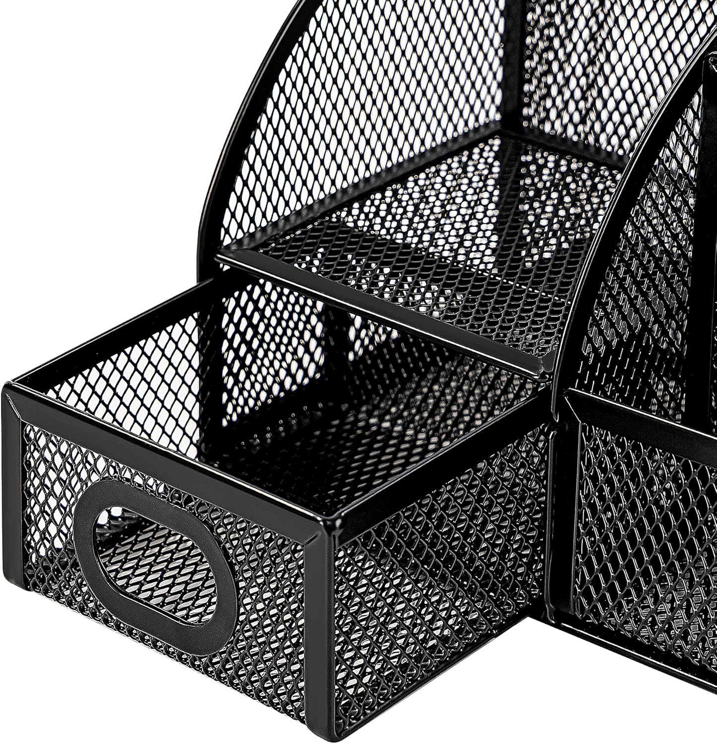 Amazon Basics Pen Holder and Desk Organizer, Office Caddy Storage, Black, 9.1" x 5.9" x 5.5''