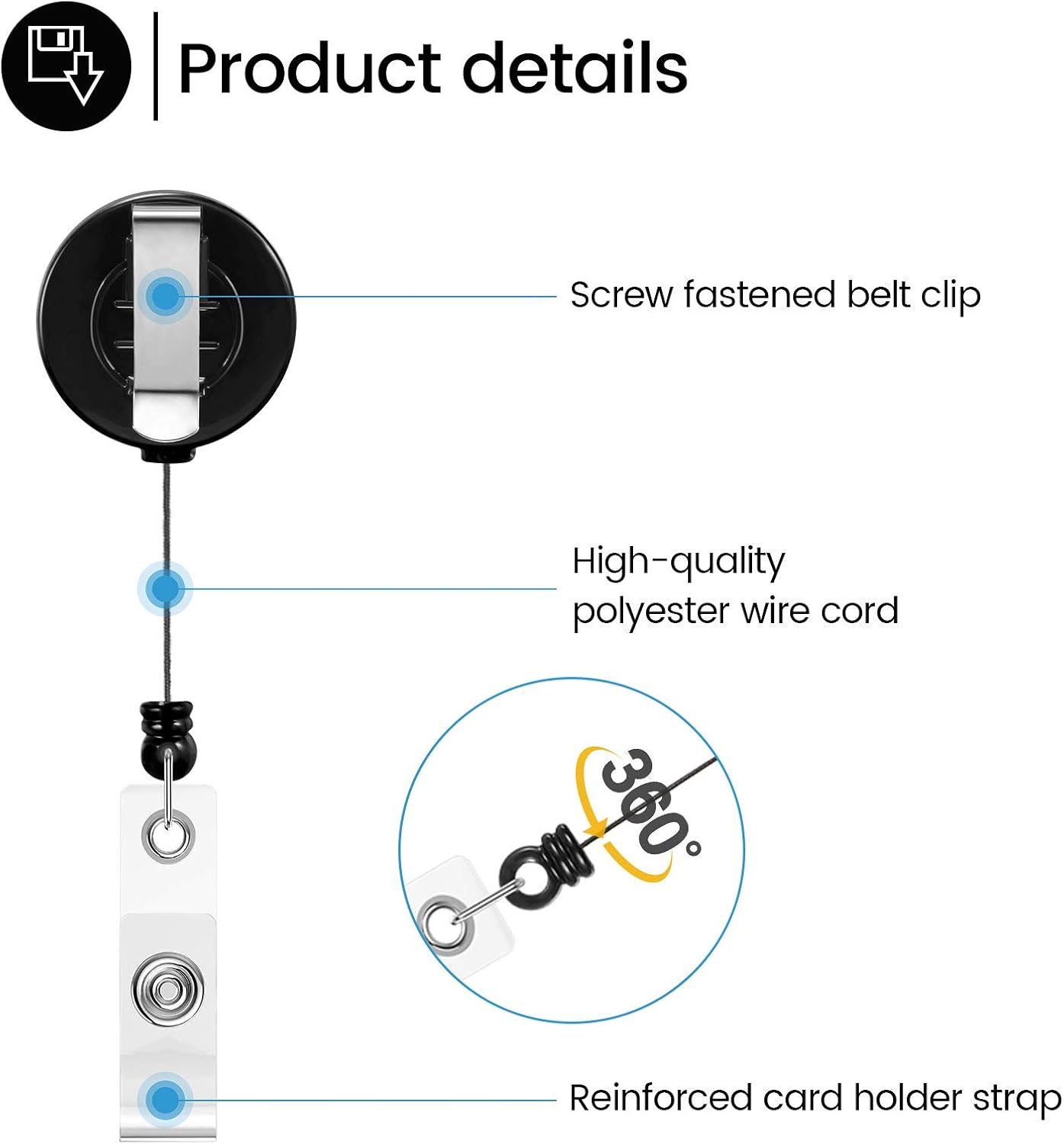 - Easy to use: a transparent card holder strap with button makes the badge reel easy to connect to most card holders and key rings; These retractable ID badge reel clips are very suitable for maintenance and security personnel