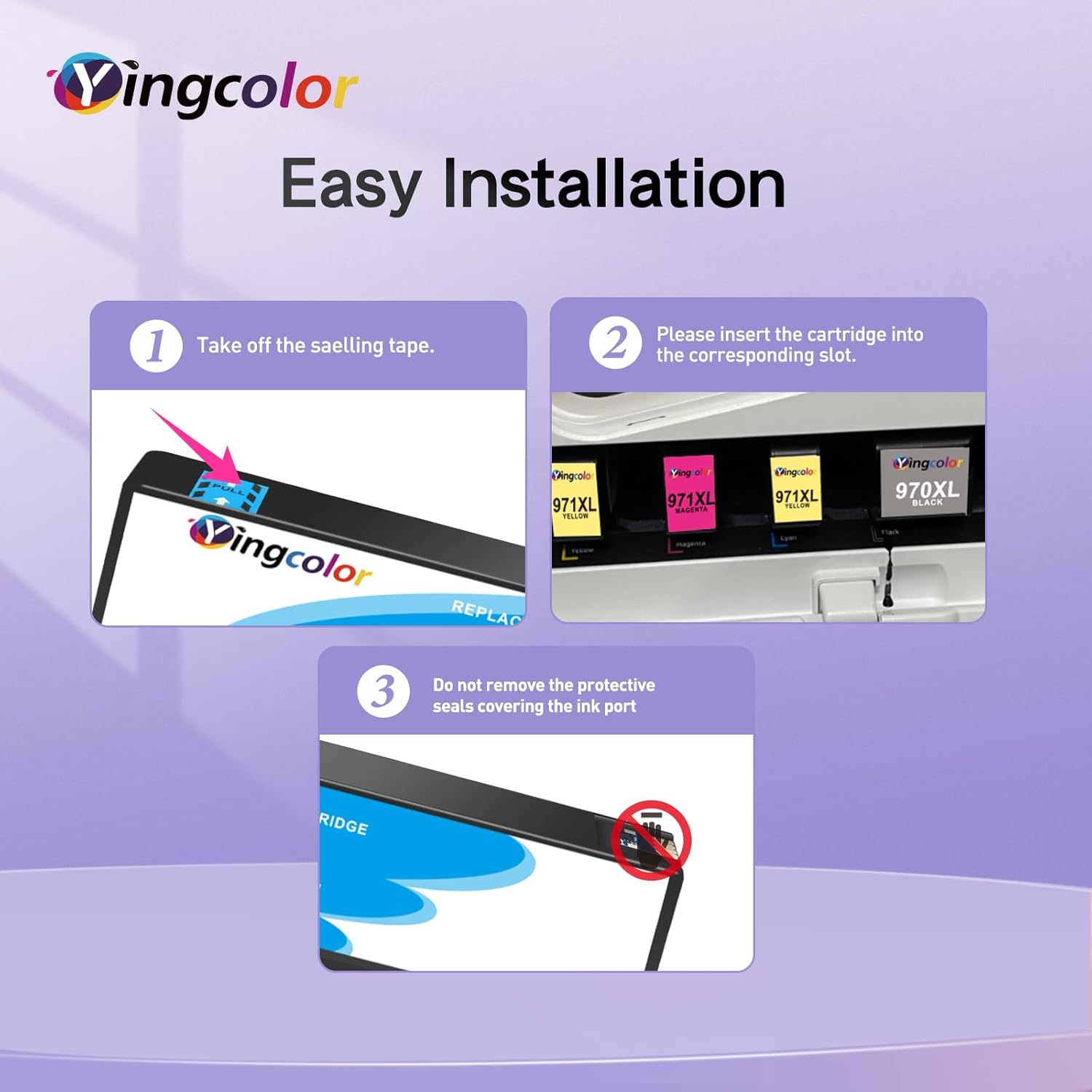 - Packing List: YingColor 970 971 Ink Cartridge (1×970 black ink, 1×971 cyan ink , 1×971 magenta ink, 1×971 yellow ink, totally 4 packs 970xl 971xl ink cartridges for daily printing)