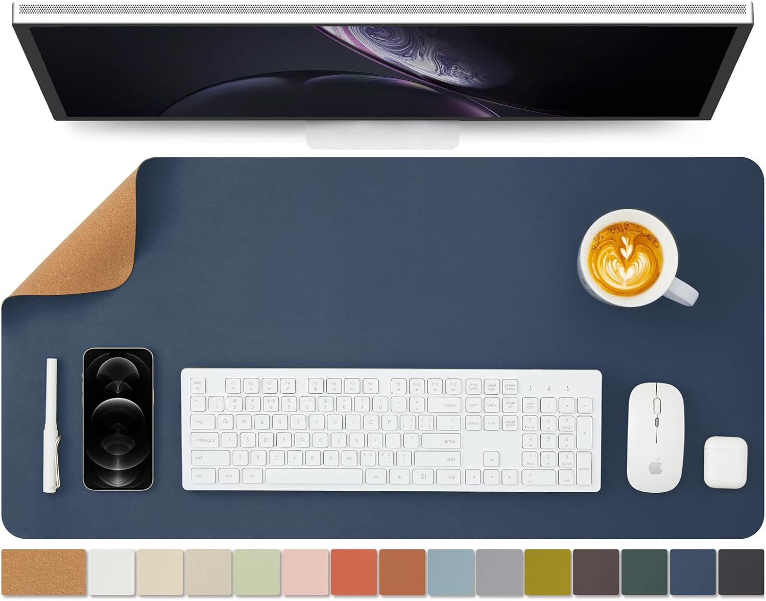 Cork Desk Mat - Dual-Sided Desk Pad for Office and Home - Desk Organization and Accessories - Ideal for Large Mouse Pad and Desk Mats on Top of Desks(Dark Blue,80cmx 40cm)