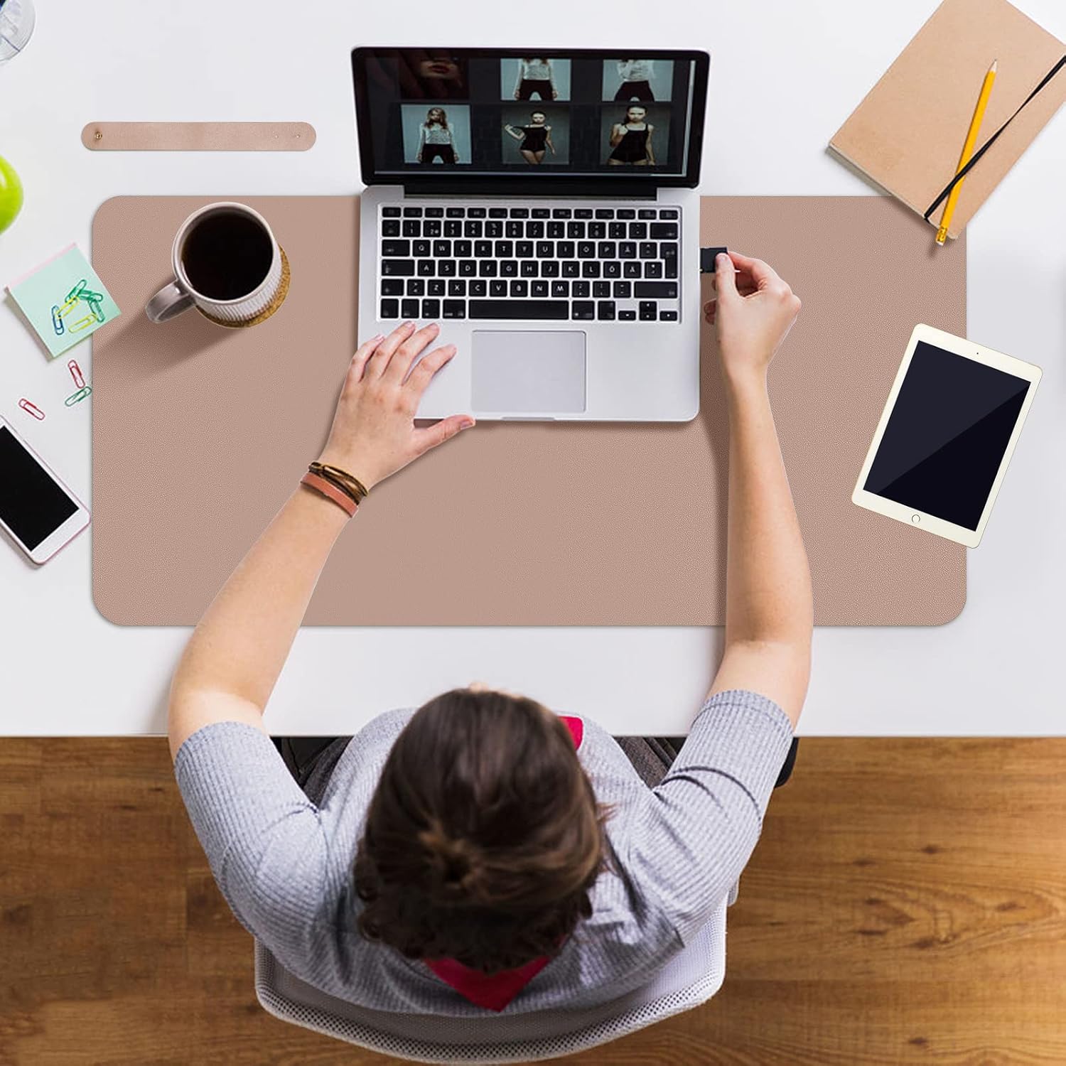 Boutilon Leather Desk Pad Protector,Non-Slip Mouse Pad,Laptop Desk Pad,Office Mouse Mat,Waterproof Leather Desk Blotter,Desk Writing Pad for Office and Home (M-Champagne,30"x14")