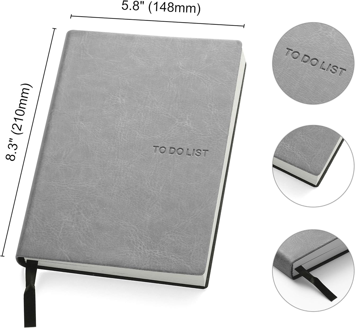 Daily to Do Checklist Notebook, Task Management, Organizer Planner, Hardcover, Ribbon Bookmark, 5.8 x 8.3”, A5 size, 110 Sheets (Grey)
