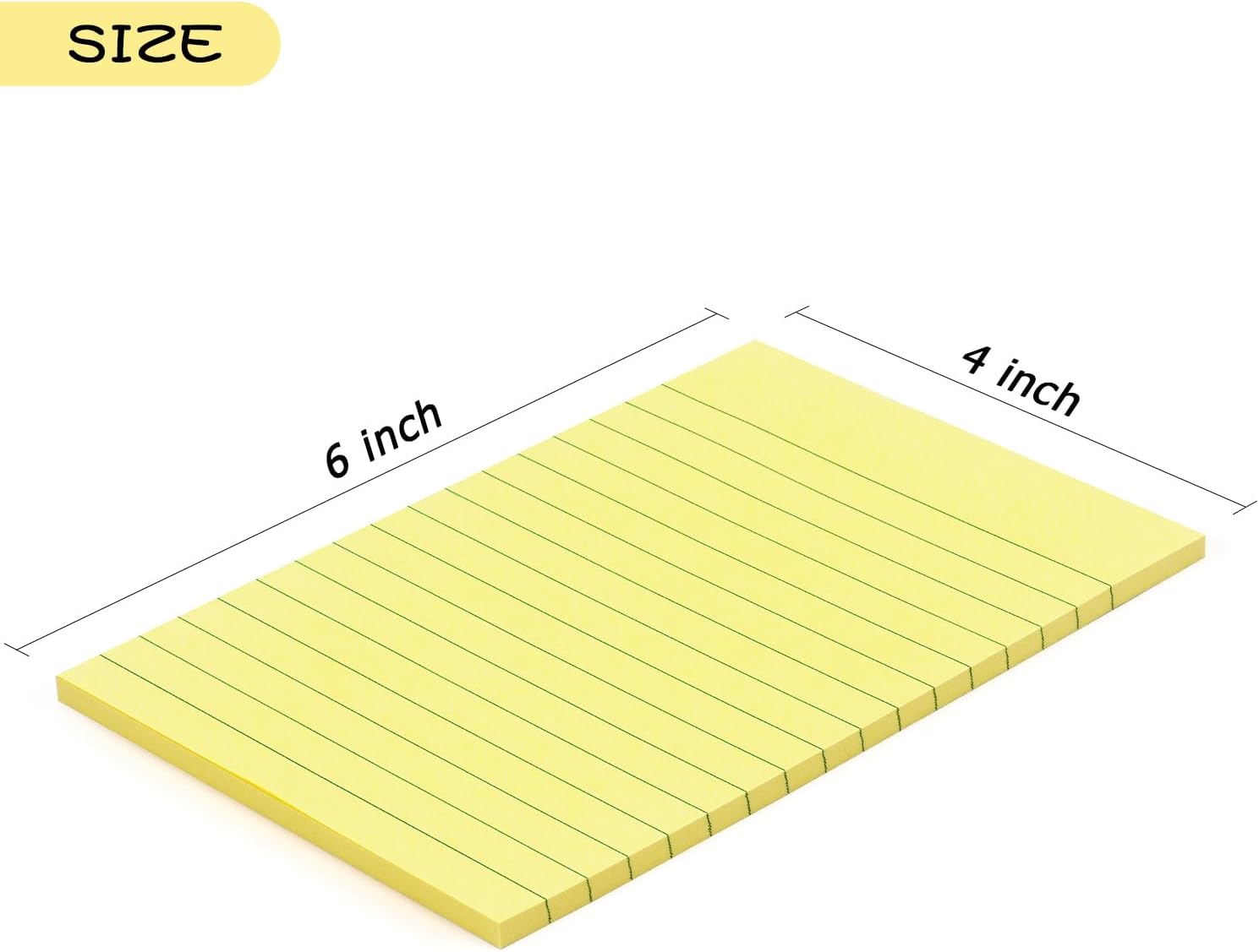 Early Buy 6 Pads Lined Sticky Notes with Lines 4x6 Self-Stick Notes Bright Color Sticky Notes, 45 Sheets/Pad (Yellow)