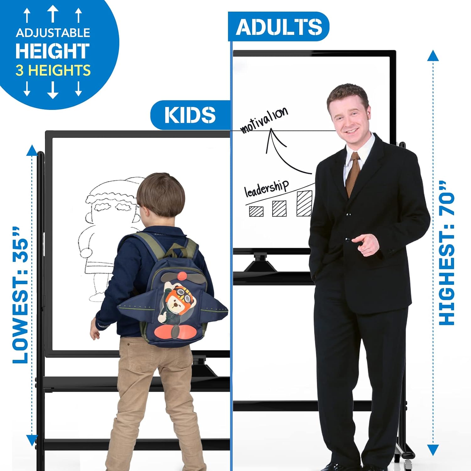 Large Dry Erase Board 48 x 36 Magnetic Non-Foldable Whiteboard with Stand Portable Mobile Rolling Double Sided with Wheels for Office Home Classroom