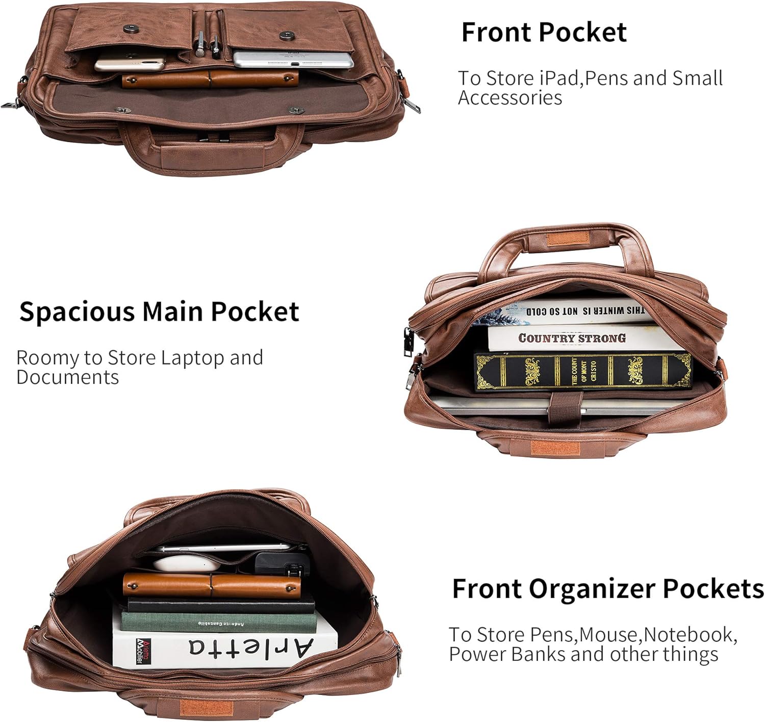 - LARGE CAPACITY - The men laptop briefcase includes external two pouches & two pen slots and inside several slots in front large pocket with adhesive hook and loop under flap over, storage penholders, documents, binder, power cords, mouse, two main zipper Pocket with foam padded sleeve fits most 17. 3 Inch laptop, back invisible zipper pocket for your valuables