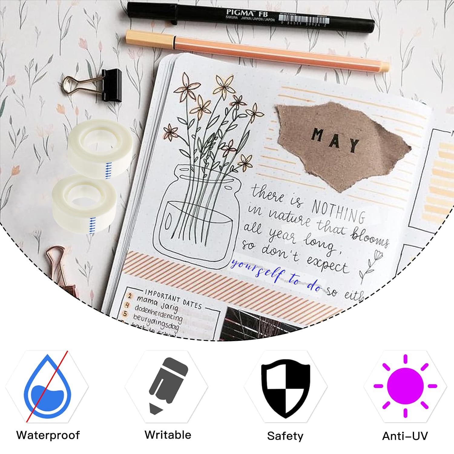 - 【Writable design】Wrapping tape makes it easy to write with pen, pencil, ballpen or marker. You can rest assured that foggy translucent tape won't shelter any pictures or words in your book