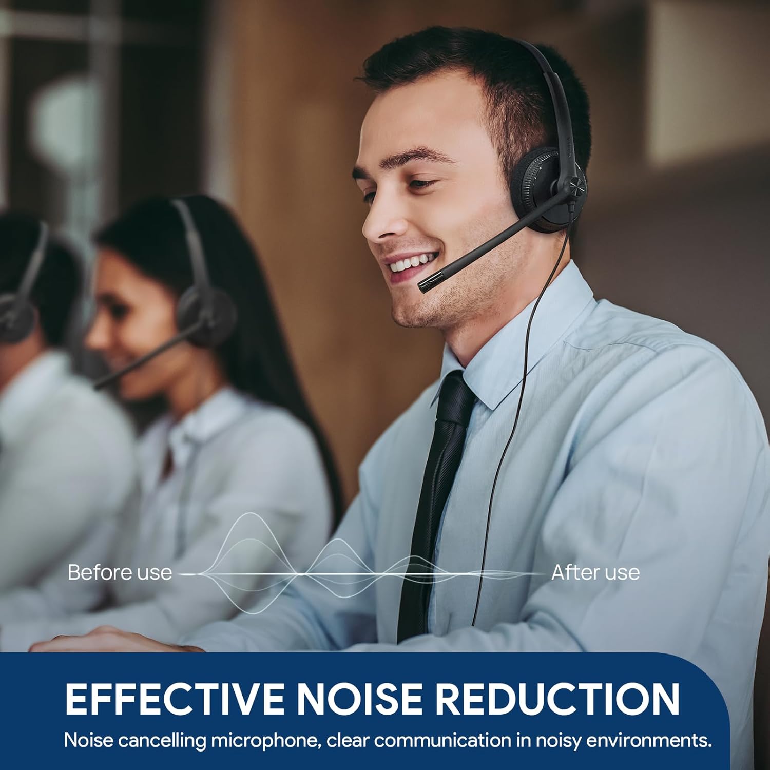 Yealink UH34 USB Headset with Noise Cancelling Mic, Work Headset for PC, Teams Certified Headphones for VoIP Phone Softphone, in Line Control