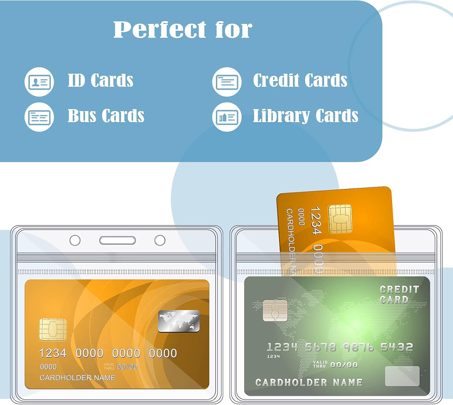 - Waterproof card holder: adopting horizontal design, each clear badge holder can accommodate up to 5 ID cards the size of a credit card, it can keep your name card, ID card or traffic pass safe and dry