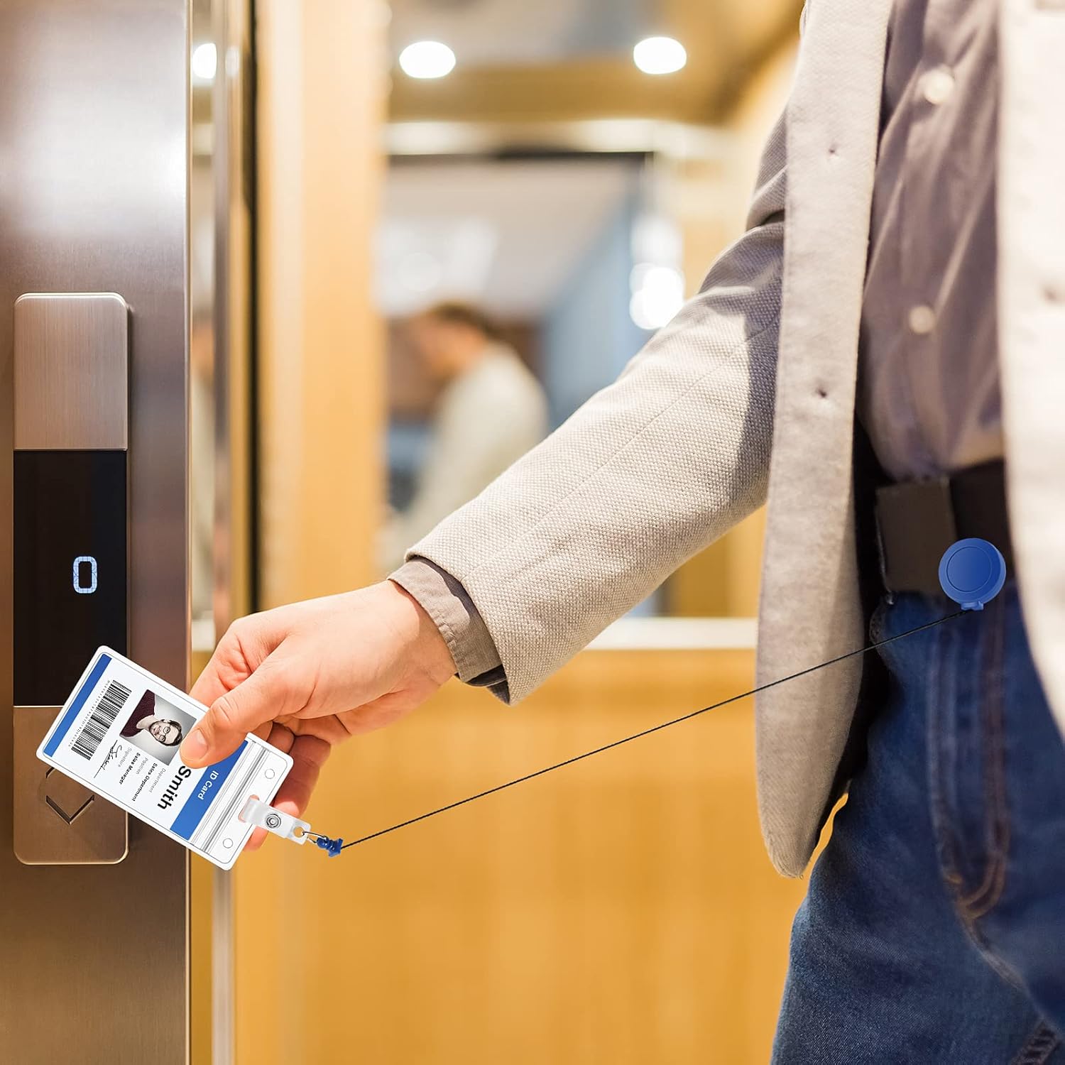 - 【MULTI DIRECTION ROTATION OF RETRACTABLE CLIP】: Id badge retractable clip’s alligator clip reel-360 ° Swivel clip makes key card holder retractable to extend smoothly no matter up, down, left or right. Name badge clips retractable are suitable for hospitals, schools, offices, factories, seminars, company activities, safety maintenance. Great for nurses, maintenance, medical and office staff, security staff, teachers, students, custodians, factory workers and employees etc