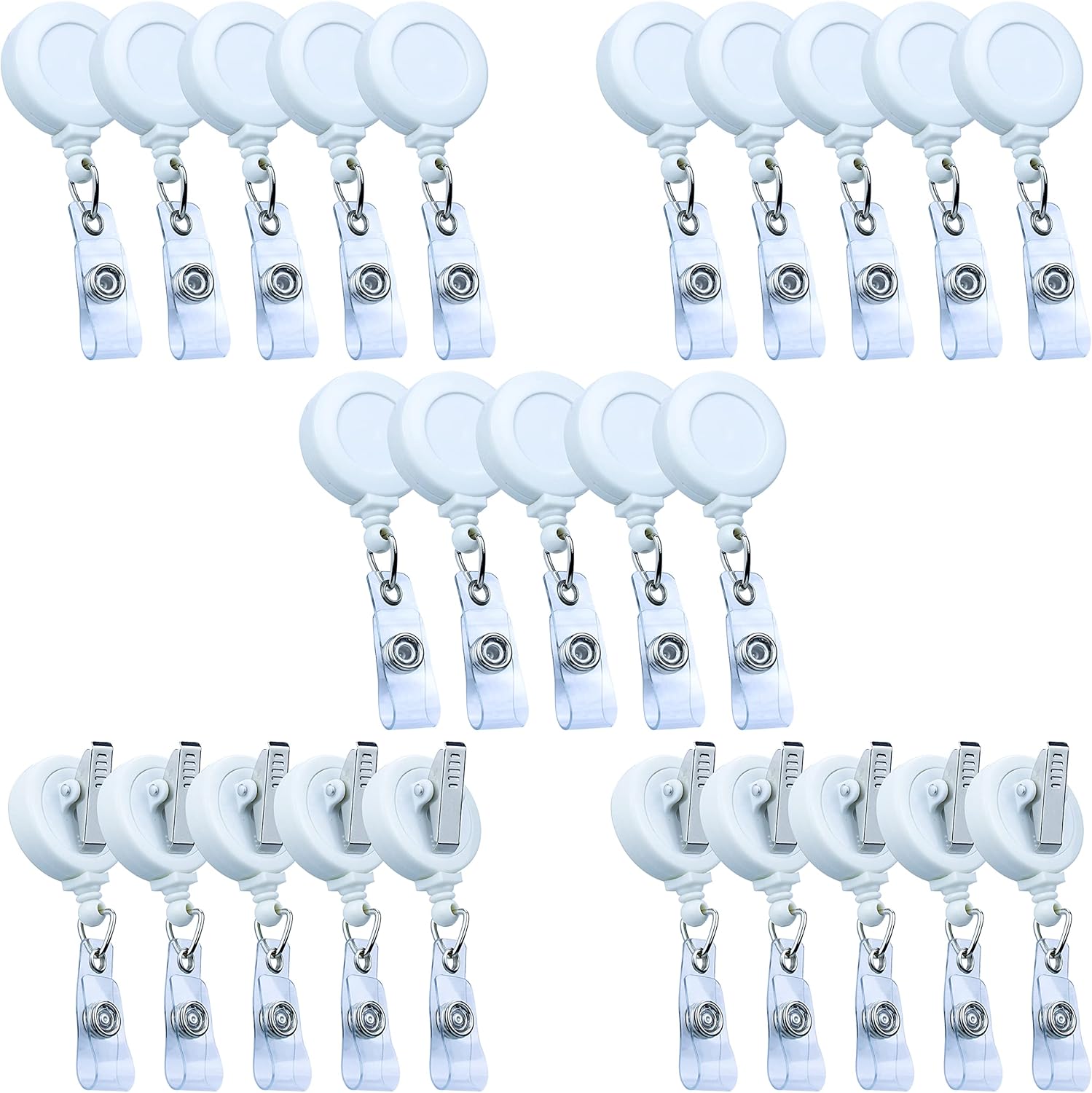 25 Pack Retractable Badge Reels with Clip, Retractable Id Badge Clip with Clear Vinyl Strap & Alligator Swivel, No Twist Dispenser (White)