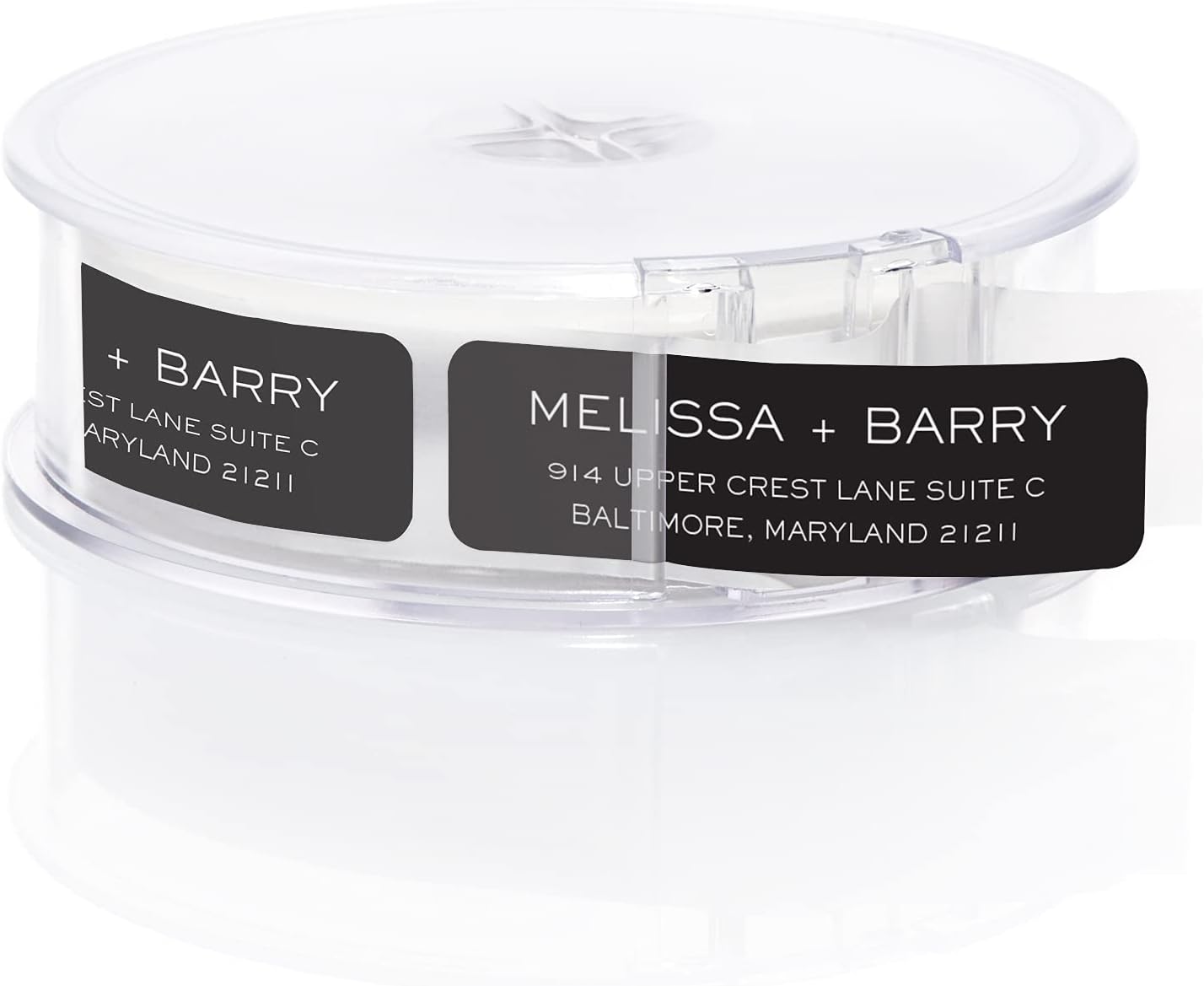 Striking Black Modern Rolled Address Labels/Roll of 250 Personalized Address Labels/Designer Return Address Stickers in Elegant Plastic Dispenser