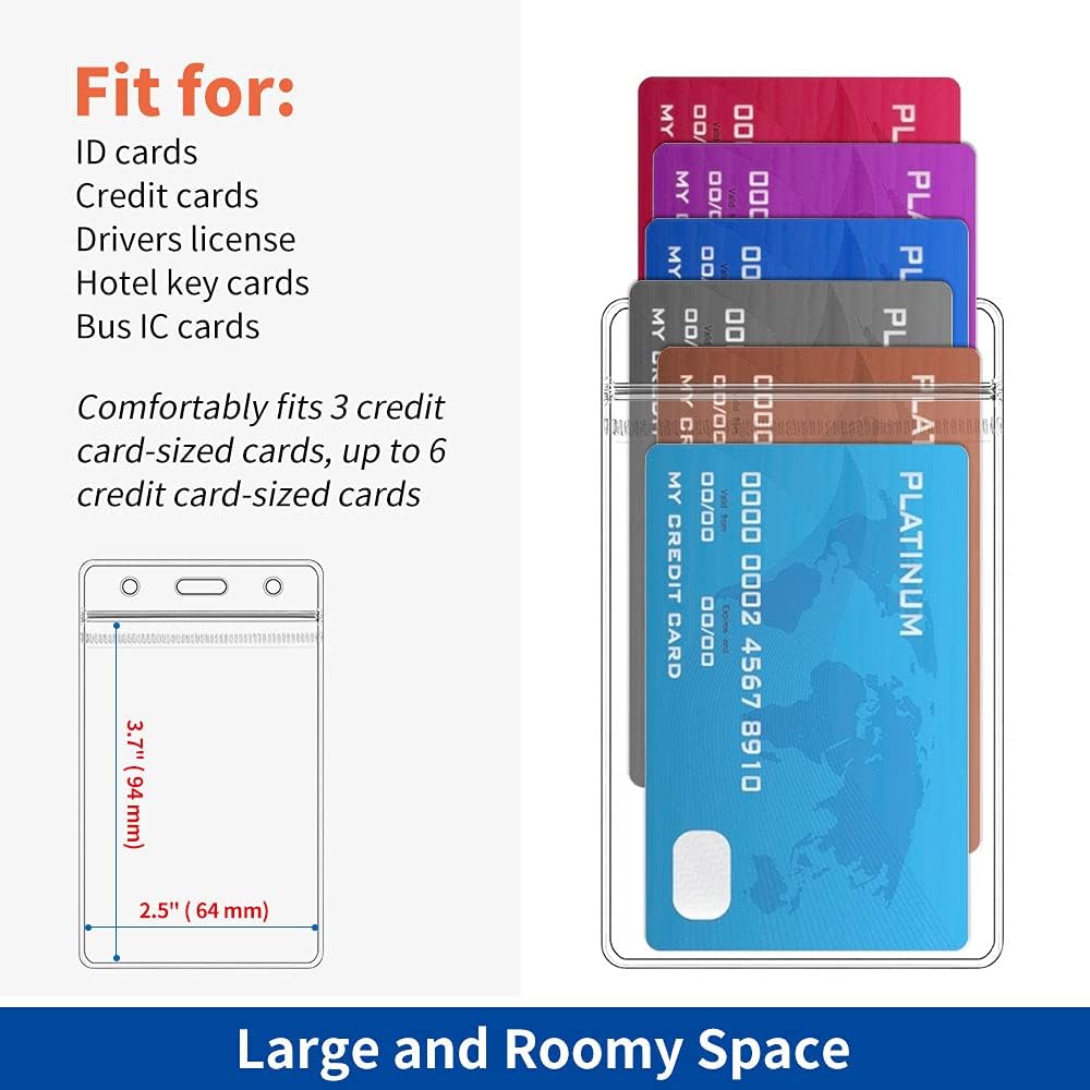 - 【Flexible Multi-purpose Design】Cards sleeve with zipper, waterproof and dustproof, can keep your cards any money safe and dry. Dual-use hanging slot/holes design, the middle slot for lanyard, keychain or retractable carabiner reel clip, the both side holes for the Strap/Cord/String/Thread.