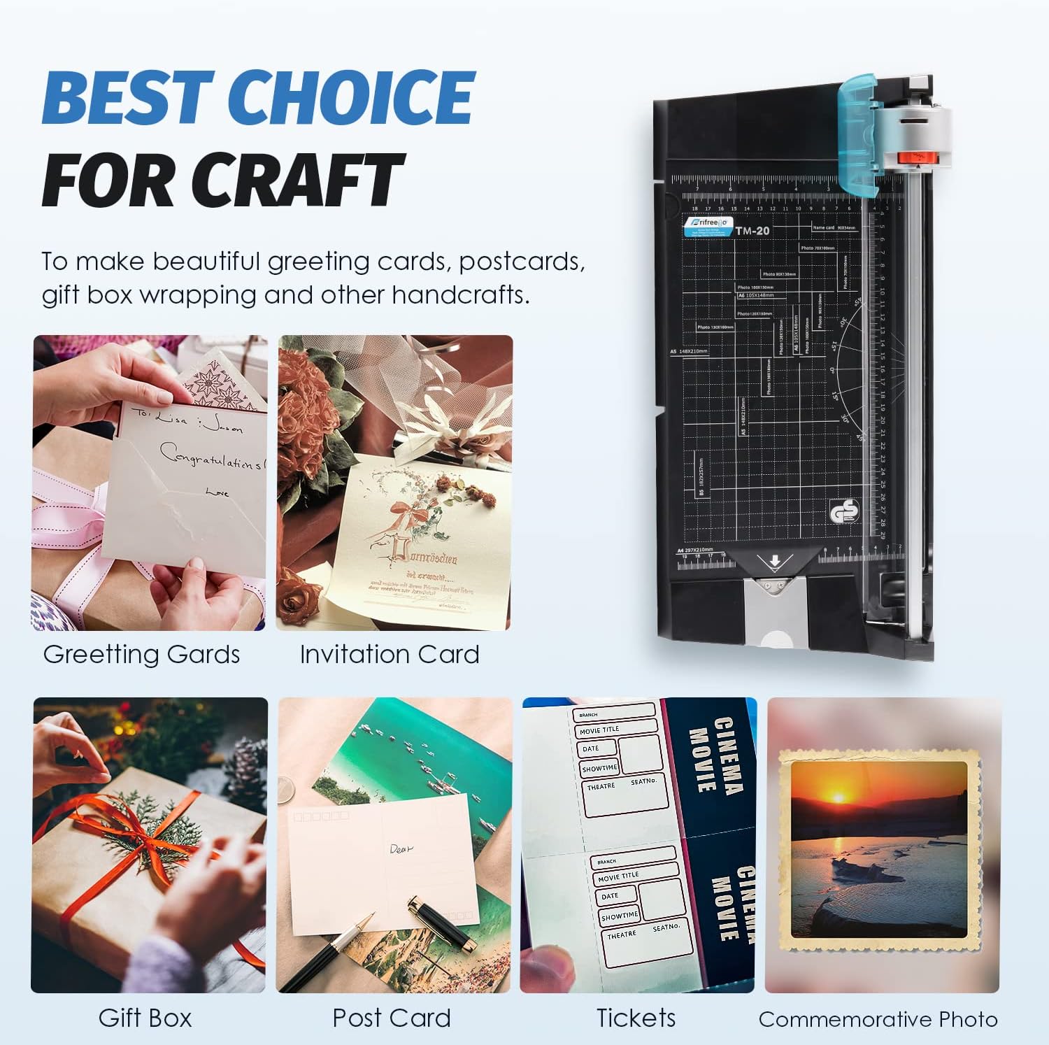 - Common Cutting Ability & Endless Design Possibilities- Just 1 paper trimmer can meet most of your needs, suitable for office use, home handwork and school craft class! Photos, postcards, Papers, documents, business cards, coupons, all of these can be made by the the sliding paper cutter.