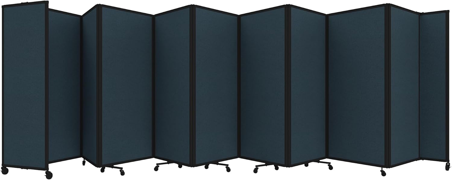 - THOUGHTFUL DESIGN: Made to roll around easily on wheels, this portable room separator also features locking casters to hold it in place. It comes with a trackable surface, sound-dampening fiberglass panels and a folding design for easy storage.