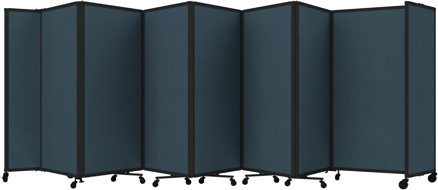 - THOUGHTFUL DESIGN: Made to roll around easily on wheels, this portable room separator also features locking casters to hold it in place. It comes with a trackable surface, sound-dampening fiberglass panels and a folding design for easy storage.