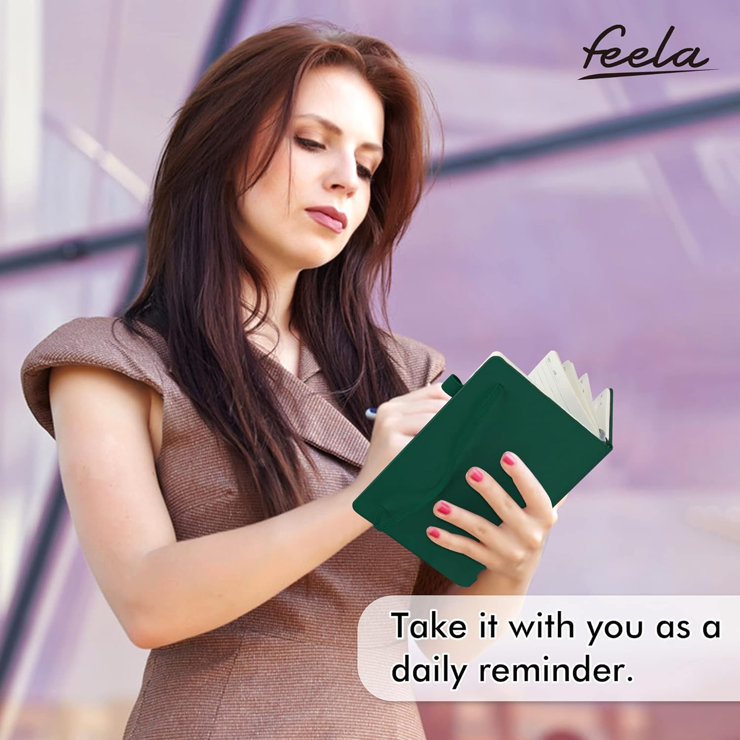 feela 5 Pack Journal Notebook Bulk for School, Hardcover Business Notebooks Classic Ruled Lined Journals with Pen Holder for Work Note Taking, with 5 Black Pens, 120 GSM, 5.1”x8.3”, A5, Dark Green