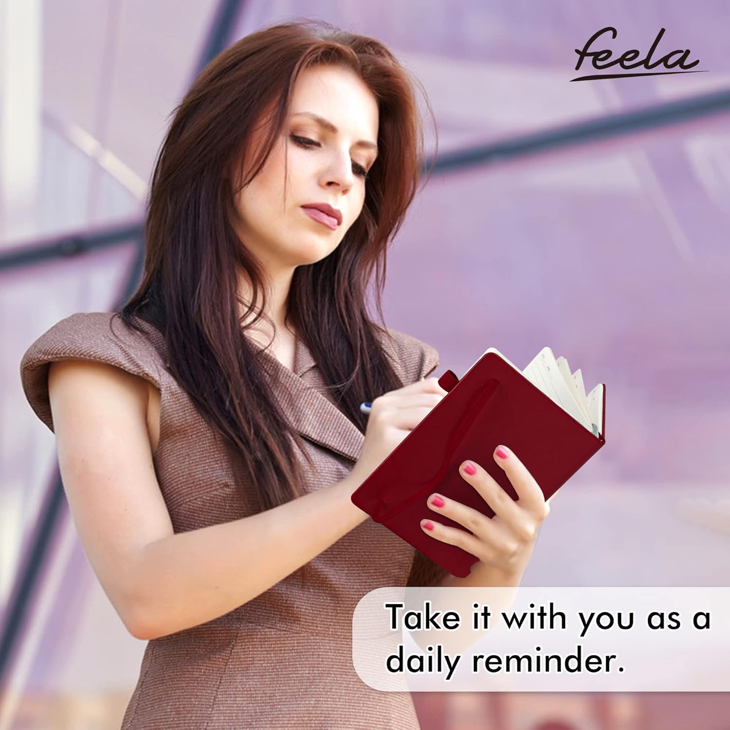 - Feela 12 Pack Classic Ruled Notebooks contains 12 classic wine ruled sturdy cover notebooks and 12 Black Retractable Pens. Each of the notebooks measures 8.3” x 5.1”, which is perfect to carry and easily held by young girls and boys. These black cute pens are customized to be placed in the pen holder, which is pretty convenient.
