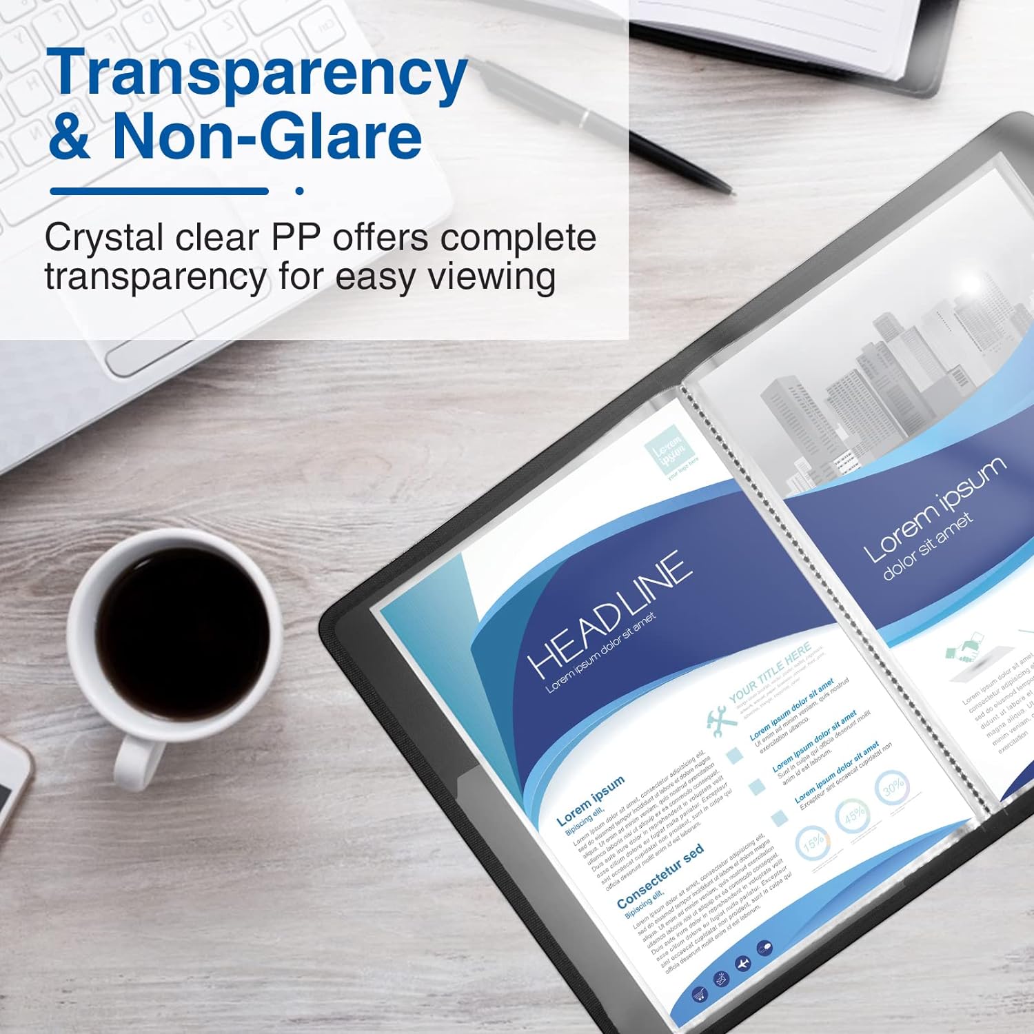 - High Transparency & Lies Flat When Open: Our presentation book with crystal clear PP sheet protectors offers complete transparency for checking through and organizing. Bound sheet protector lies flat when open, free your hands.