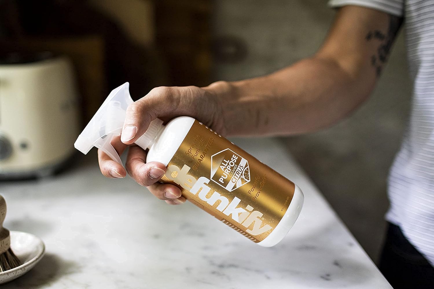 - ๐ฆ๐ฝ๐ฟ๐ฎ๐ ๐๐ต๐ฒ ๐๐๐ป๐ธ ๐ข๐ณ๐ณ!' ๐๐๐ฎ๐ฟ๐ฎ๐ป๐๐ฒ๐ฒ: Defunkify's All Purpose Cleaner is a concentrated degreaser that makes quick work of spills, grime & residue left behind by other surface cleaners. As a lightly scented 'Citrus' essential oil multi surface cleaner, w/ all natural odor & set-in stain remover ingredients, ๐๐ผ๐๐ฟ ๐ต๐ฎ๐ฟ๐ฑ ๐๐๐ฟ๐ณ๐ฎ๐ฐ๐ฒ๐ ๐๐ถ๐น๐น ๐ฏ๐ฒ ๐น๐ผ๐ผ๐ธ๐ถ๐ป๐ด & ๐๐บ๐ฒ๐น๐น๐ถ๐ป๐ด ๐น๐ถ๐ธ๐ฒ ๐ป๐ฒ๐ ๐๐ถ๐๐ต ๐ฎ ๐๐ถ๐ป๐ด๐น๐ฒ ๐ฎ๐ฝ๐ฝ๐น๐ถ๐ฐ๐ฎ๐๐ถ๐ผ๐ป, ๐ด๐๐ฎ๐ฟ๐ฎ๐ป๐๐ฒ๐ฒ๐ฑ.
