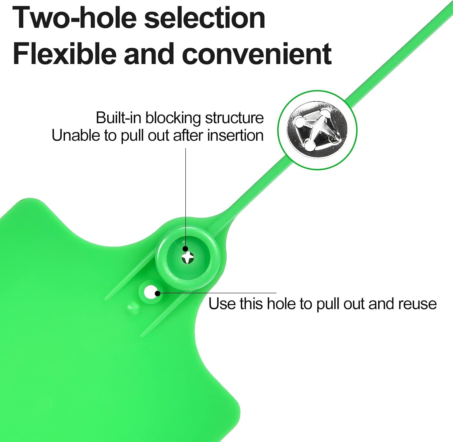 - 2. Easy on One Time Use Lock or Re-use: Our blank tags have metal locking mechanism inside. Simply insert the tail to lock. No need any tools. One-Way Self-Locking Technology for a tamper proof security seal. It cannot be pulled out once locked. But if you want to RE-USE your tie tags, you can use the second easy-release hole!