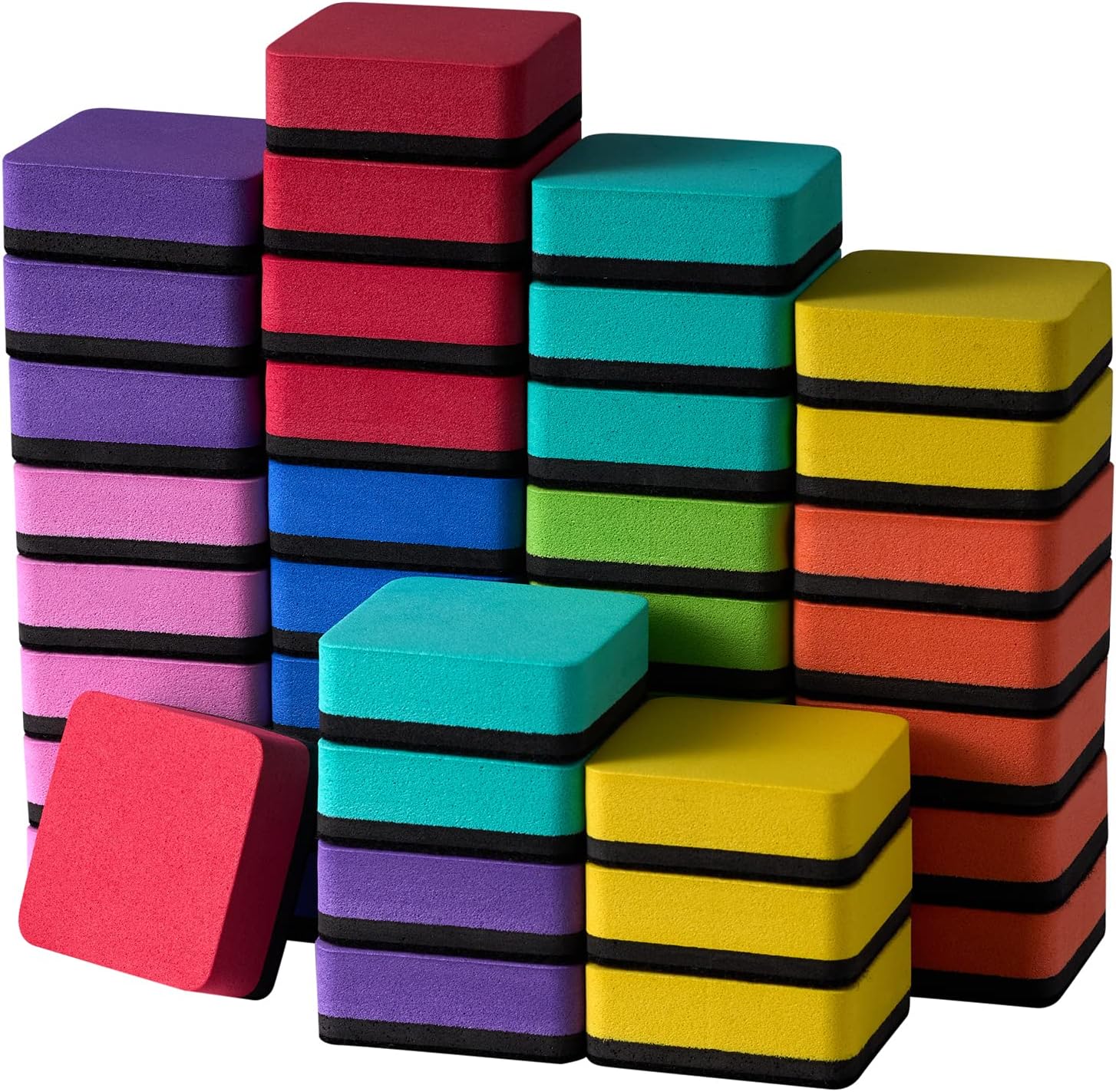Dry Erase Erasers, Eeoyu 40 Pack Magnetic Whiteboard Dry Erasers Chalkboard Cleaner Wiper for Kids and Classroom Teacher Supplies Home and Office, 8 Color