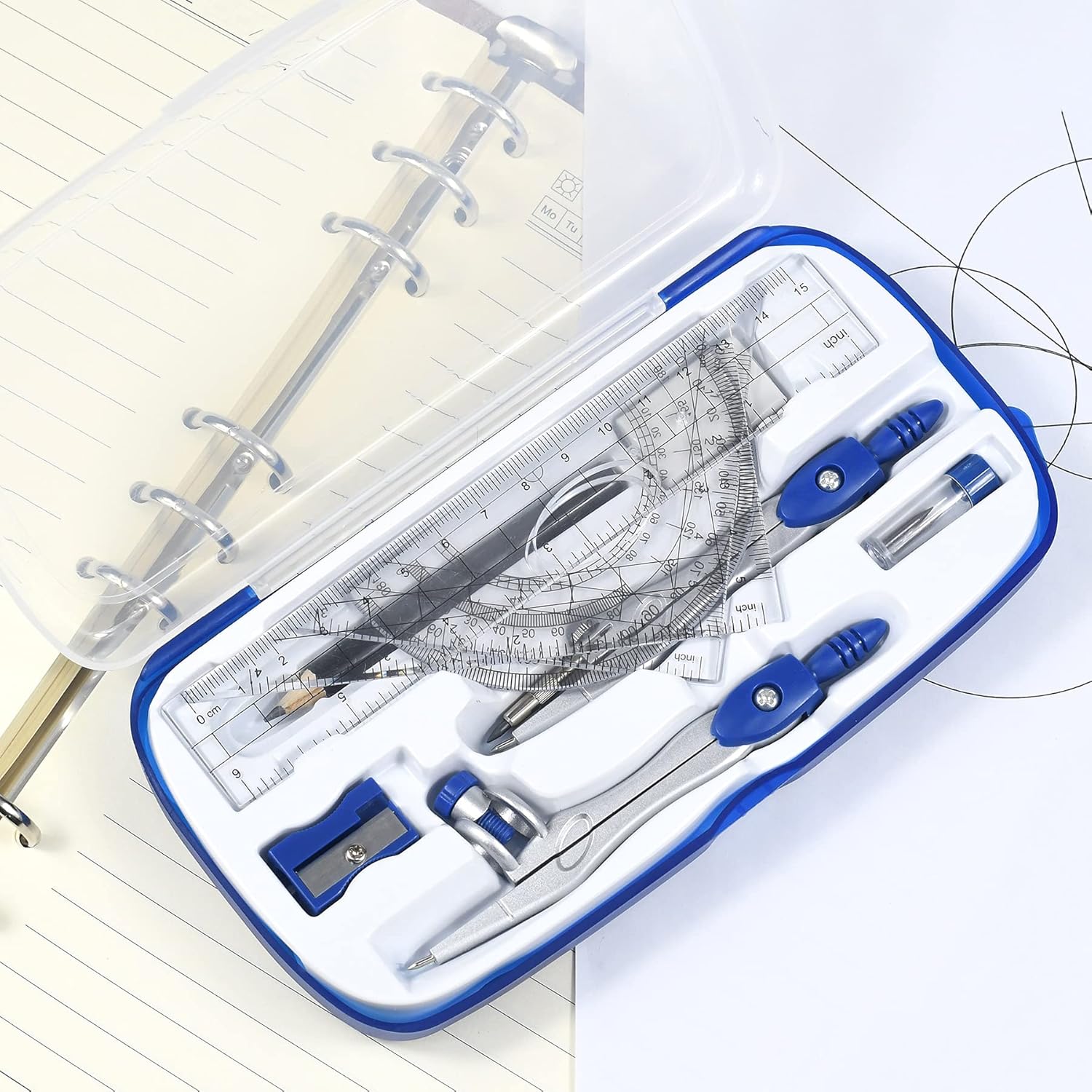 - A Practical Compass Geometry Set:Long-Lasting metal compasses will not bend, Ergonomically designed compass head is comfortable to hold, Universal Holder Compass work with any standard sized pencil or pen
