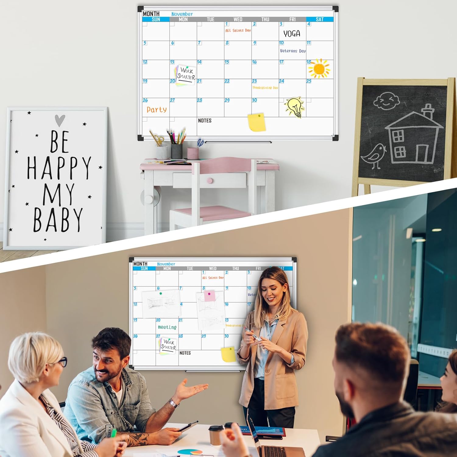 XBoard Magnetic Calendar Whiteboard 48" x 36" - Monthly Calendar Dry Erase Board, White Board + Colorful Calendar Board, Silver Aluminium Framed Monthly Planning Board
