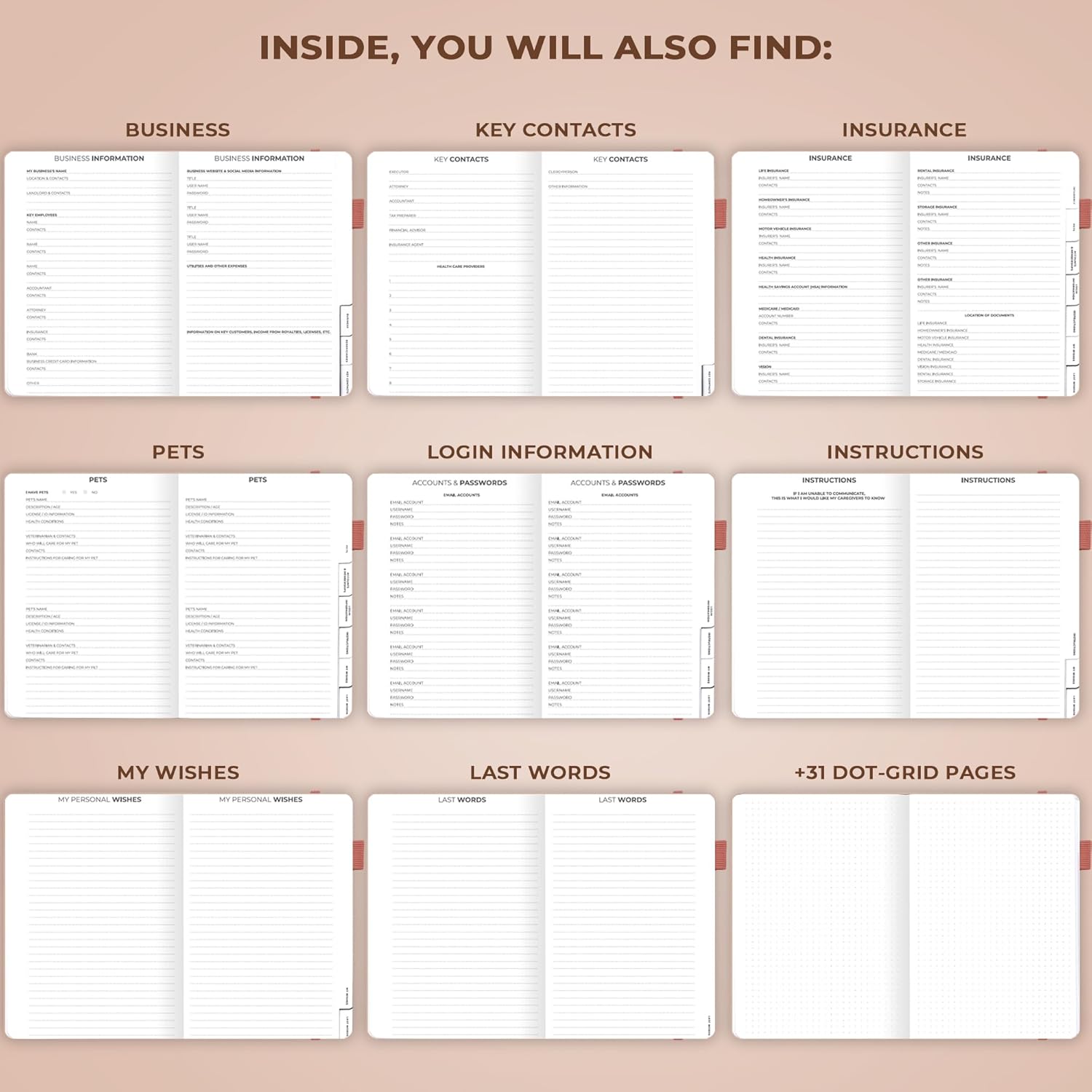 - PREPARE DETAILED INSTRUCTIONS TO GUIDE YOUR LOVED ONES: This guided final arrangements planner is an easy-to-use tool for organizing all essential personal information, from medical data to passwords and financial records.